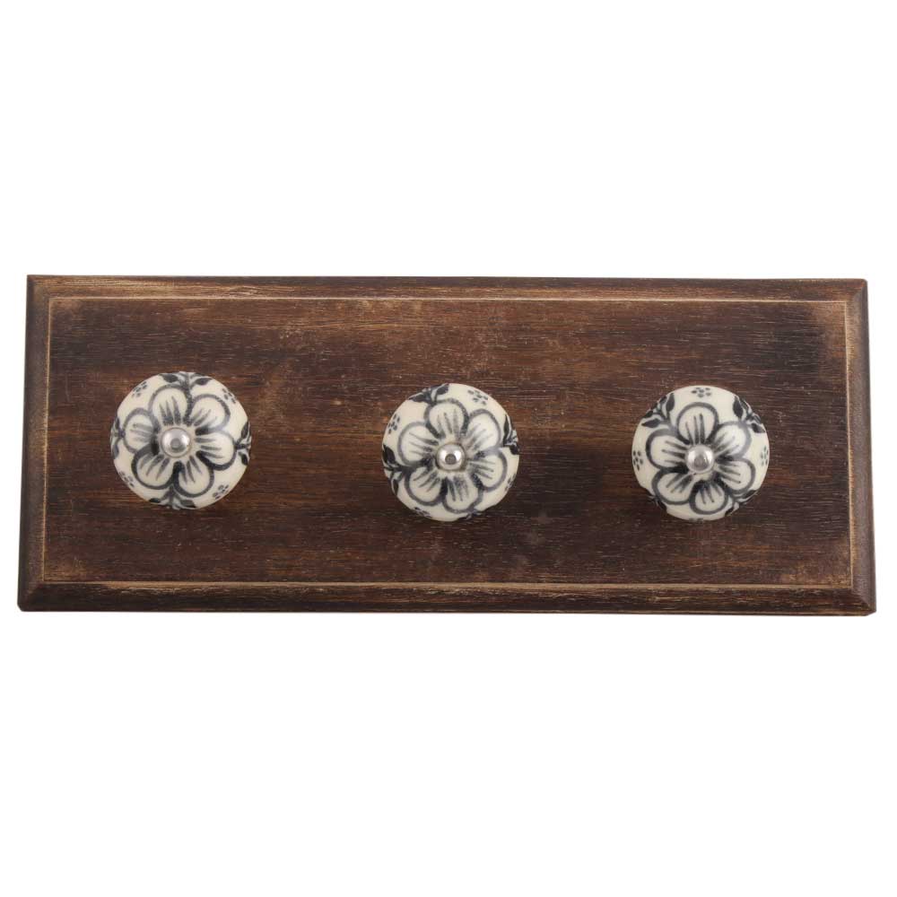 Black Leaf Round Ceramic Wooden Hook. A Perfect Complement to the Soft Tone of the Wood are these White Traditional Hat & Coat Hook Made of Genuine Porcelain and Brass. It can be use to Hang Jewellery, Leashes, Towels, Scarves, Light Weight Sweaters, Caps Etc.