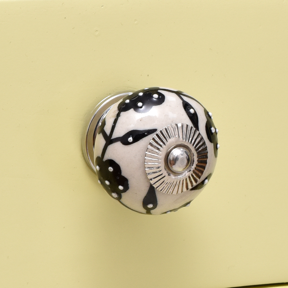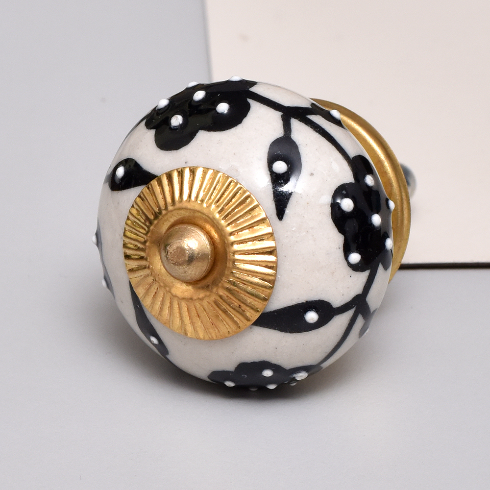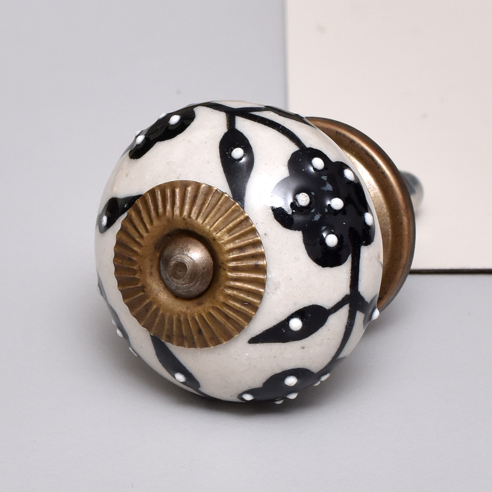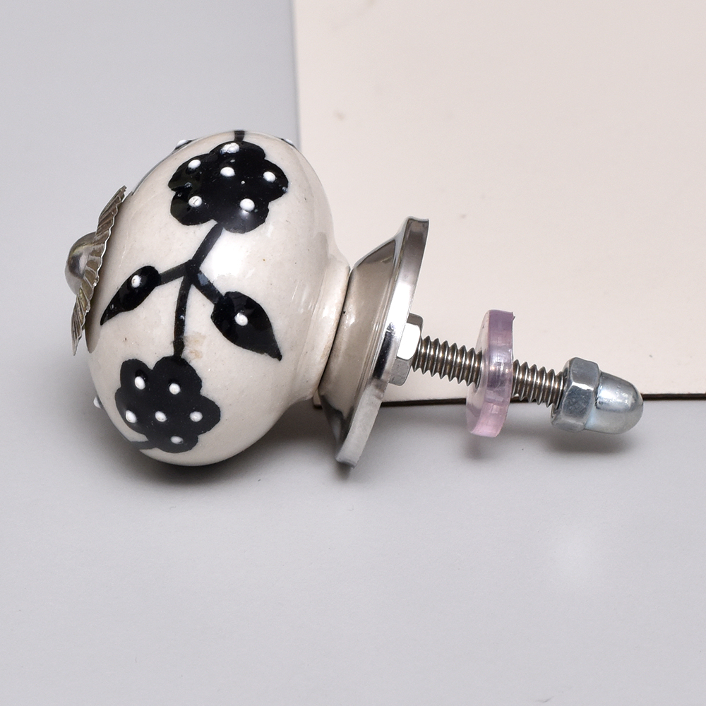Black Leaf Tiny Flower Ceramic Knob