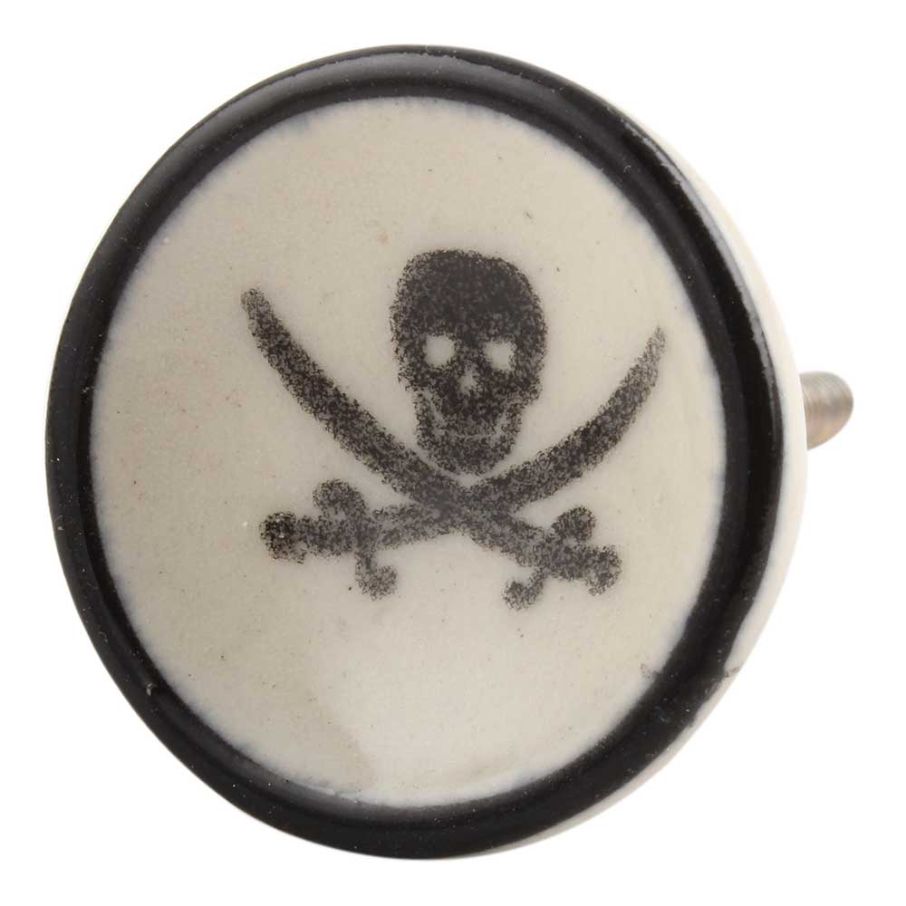 Black Man Skull Danger Symbol Flat Ceramic Cabinet Knob