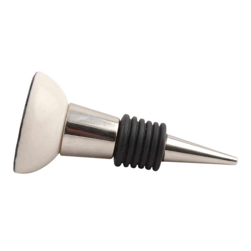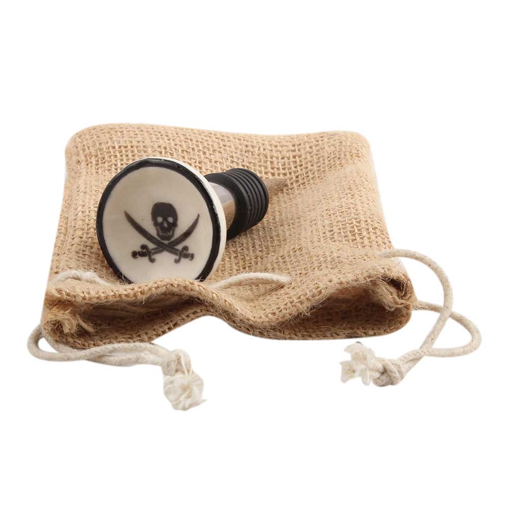 Black Man Skull Danger Symbol Flat Ceramic Wine Stopper.zinc alloy wine bottle stopper with attractive Jute Bag Packaging.