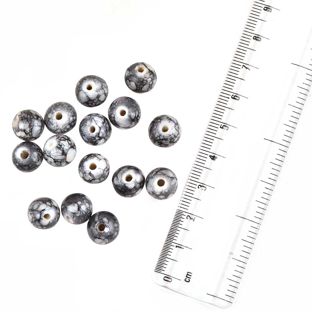 Black Marble Pattern Round Glass Loose Jewelry Making Beads (12 in Pack)