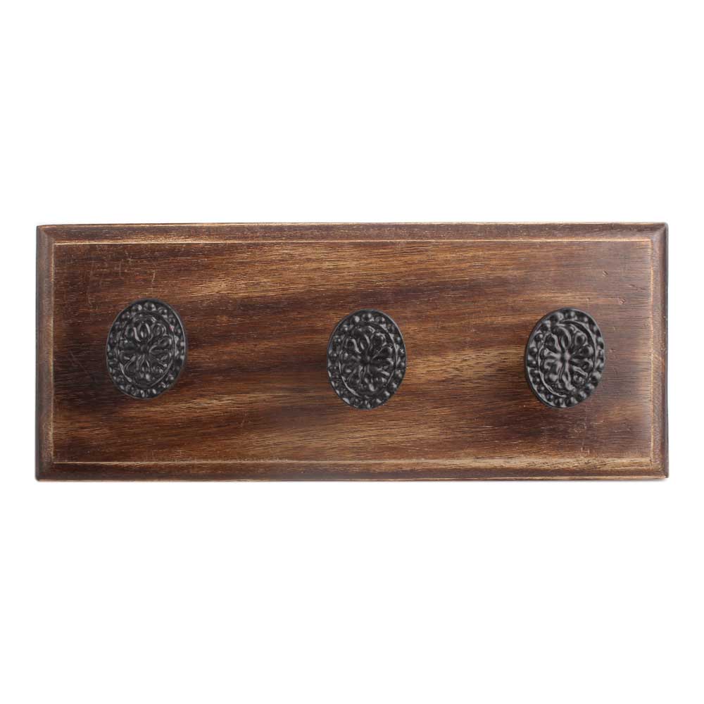 Black Oval Flower Metal Wooden Hooks