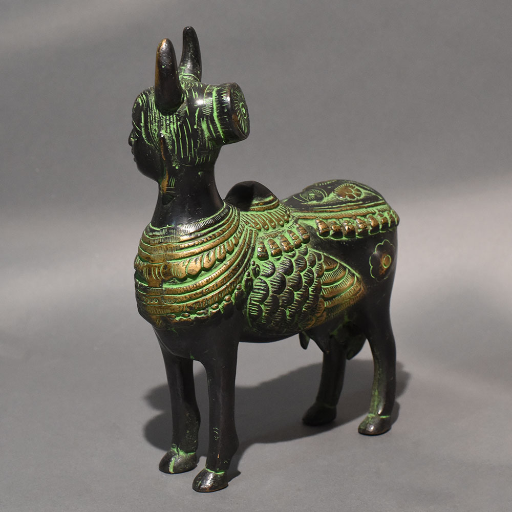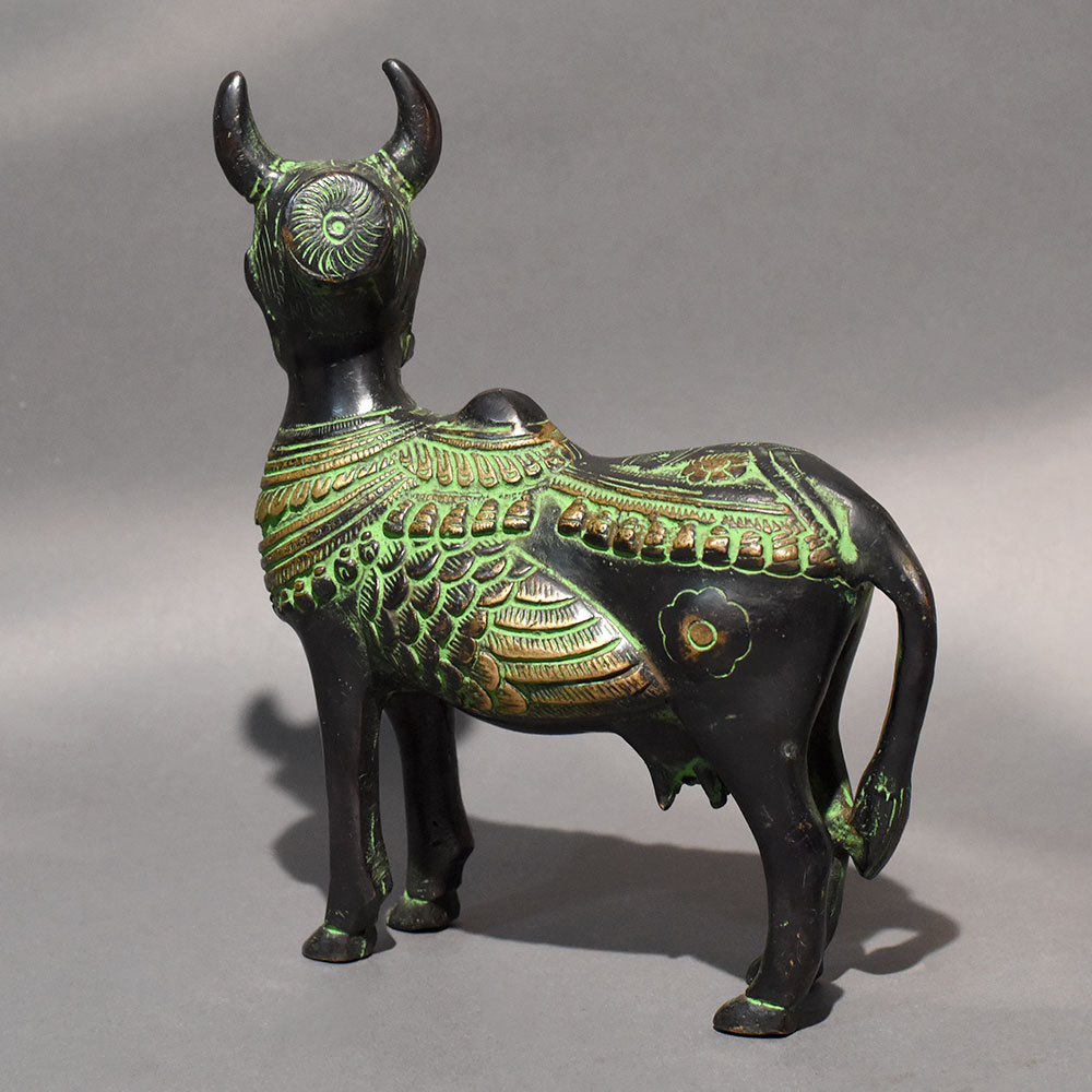 Enhance your spiritual space with this beautifully handcrafted Brass Kamadhenu Statue, a timeless symbol of prosperity, purity, and divine blessings. Kamadhenu, revered in Hindu tradition as the sacred wish-fulfilling cow, represents abundance, nourishment, motherhood, and protection. The presence of the calf beneath her further signifies care, continuity, and unconditional love. Made from high-quality solid brass, this statue features intricate carvings inspired by traditional temple art. The finely detailed crown, ornaments, wings, and decorative pedestal reflect skilled craftsmanship, while the antique gold finish adds a rich and elegant touch. Ideal for pooja rooms, home temples, altars, or spiritual corners, this Kamadhenu idol is believed to invite harmony, wealth, and positive energy into your home or workplace. It also makes a meaningful gift for housewarming ceremonies, weddings, festivals, and other auspicious occasions. A perfect blend of devotion, artistry, and cultural heritage, this brass statue adds both spiritual significance and decorative charm to any setting.