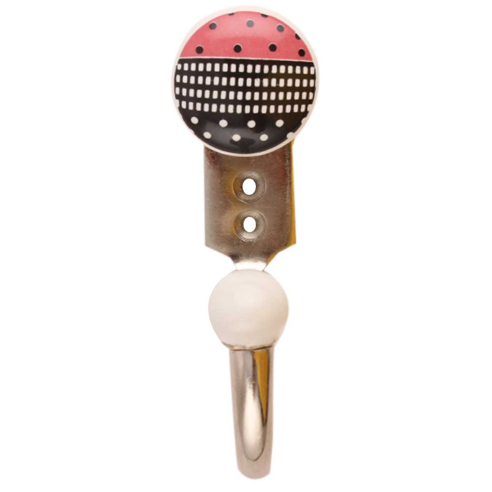Black Pink Ceramic Flat Dresser Hook. When Put on Wall or Cabinet It is An Art in Itself. This Hook is Strong Enough to Hold Your Keys, Tea Cups, Hand Towels, Cloths Etc.