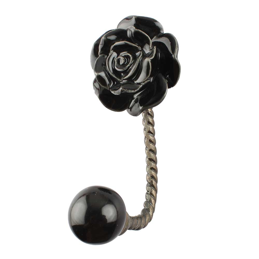 Black Rose Ceramic Iron Wall Hook in Antique Fitting
