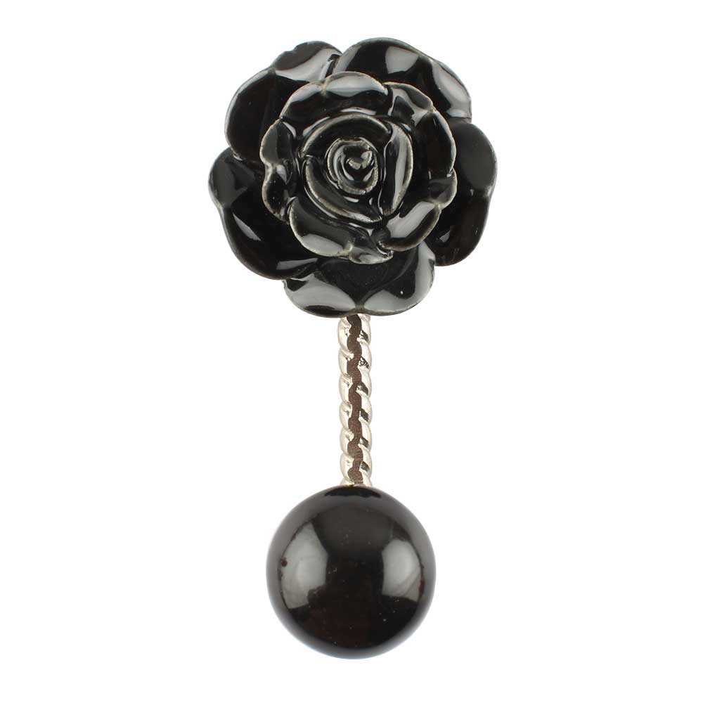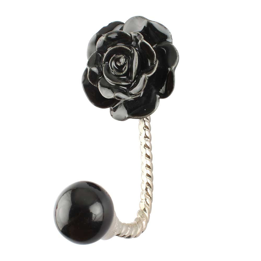 Black Rose Ceramic Iron Wall Hook in Silver Fitting