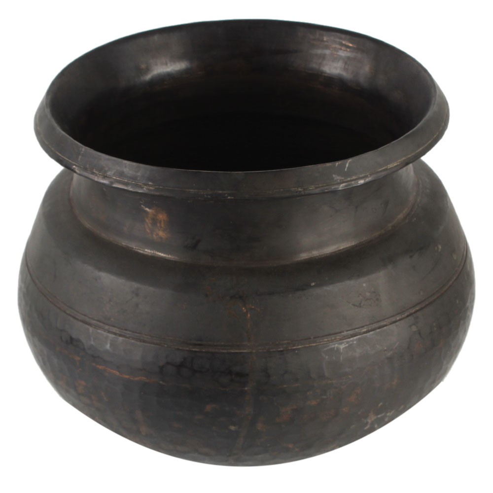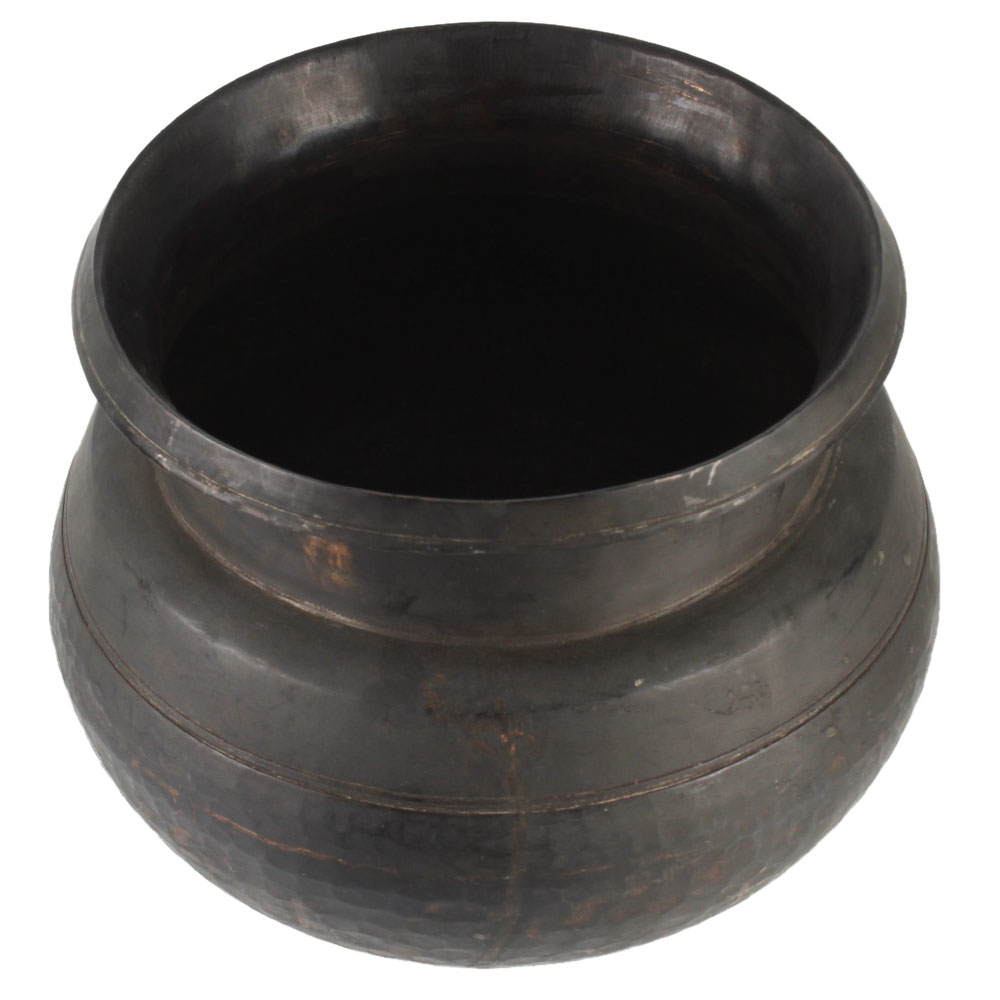 Black Round Brass Pot With A Wide Mouth