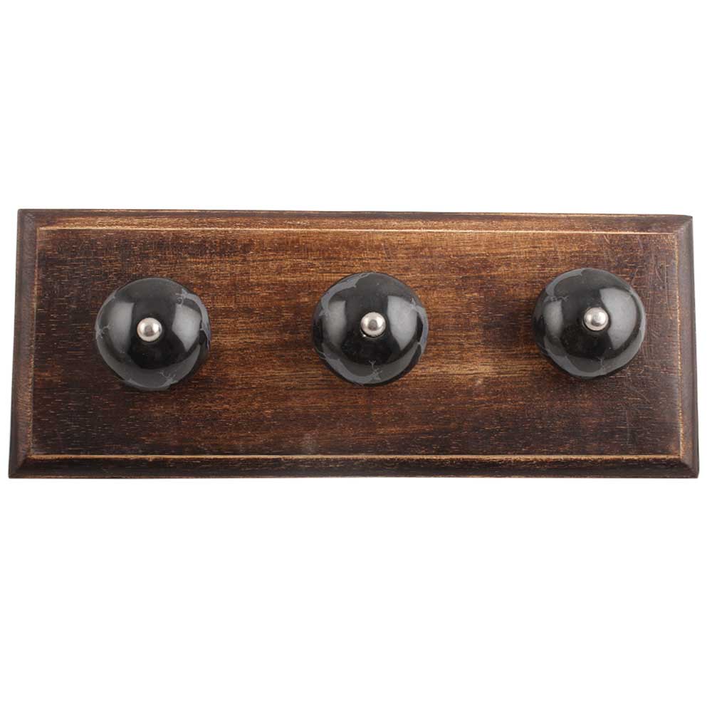 Black Running Rein Deer Pattern Ceramic Wooden Hook. A Perfect Complement to the Soft Tone of the Wood are these White Traditional Hat & Coat Hook Made of Genuine Porcelain and Brass. It can be use to Hang Jewellery, Leashes, Towels, Scarves, Light Weight Sweaters, Caps Etc.