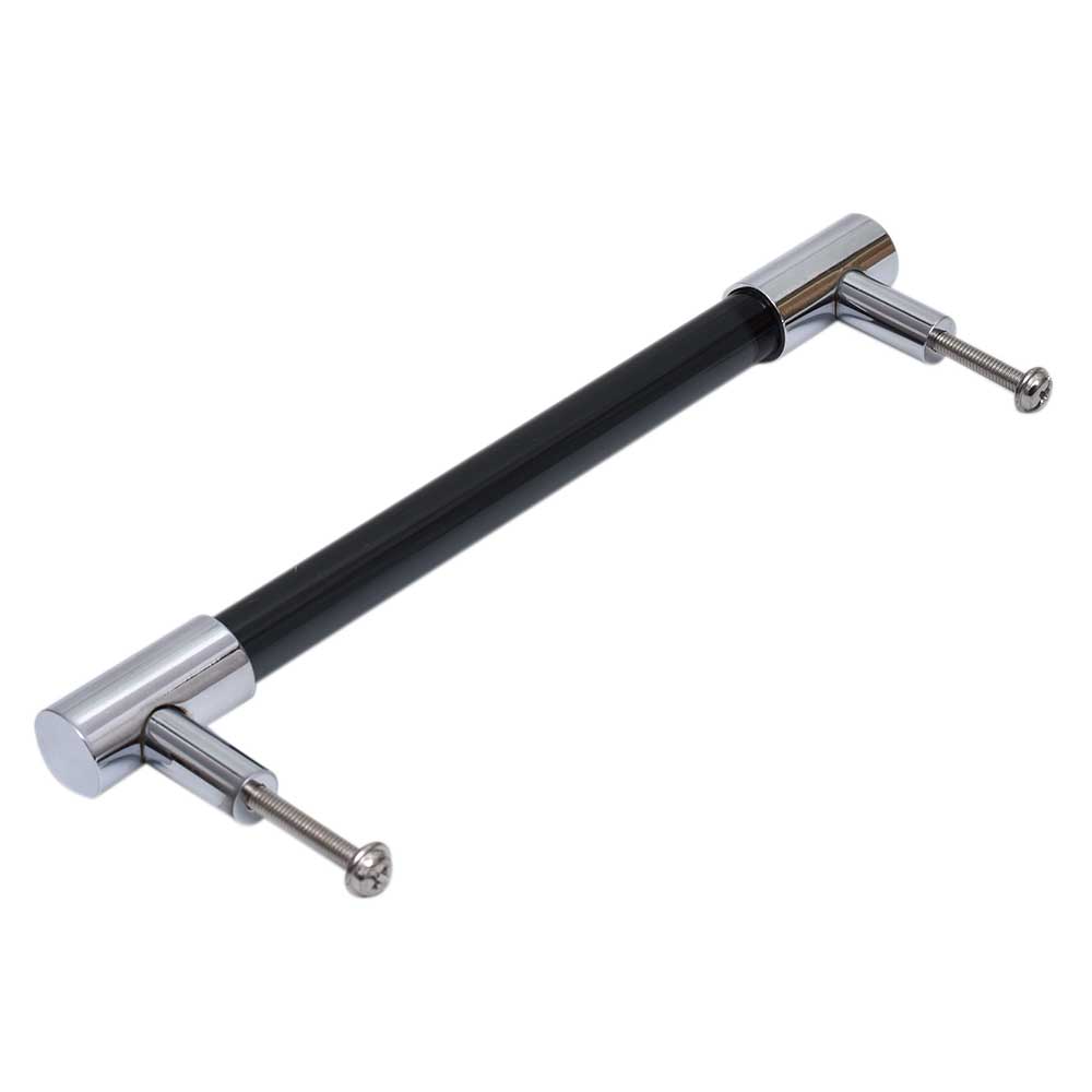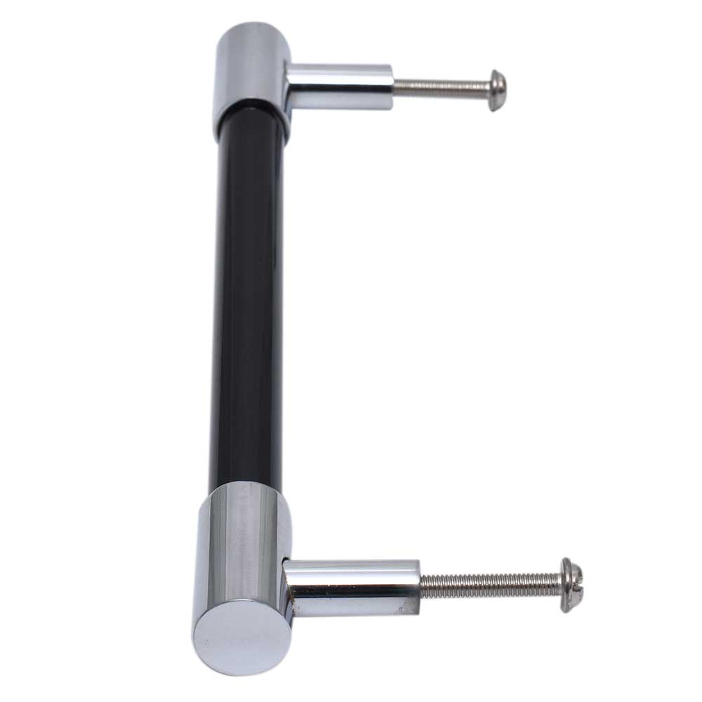 Enhance your furniture with these exquisitely crafted black silver medium cylinder glass door handles, designed to add a touch of sophistication and modern elegance to any space.