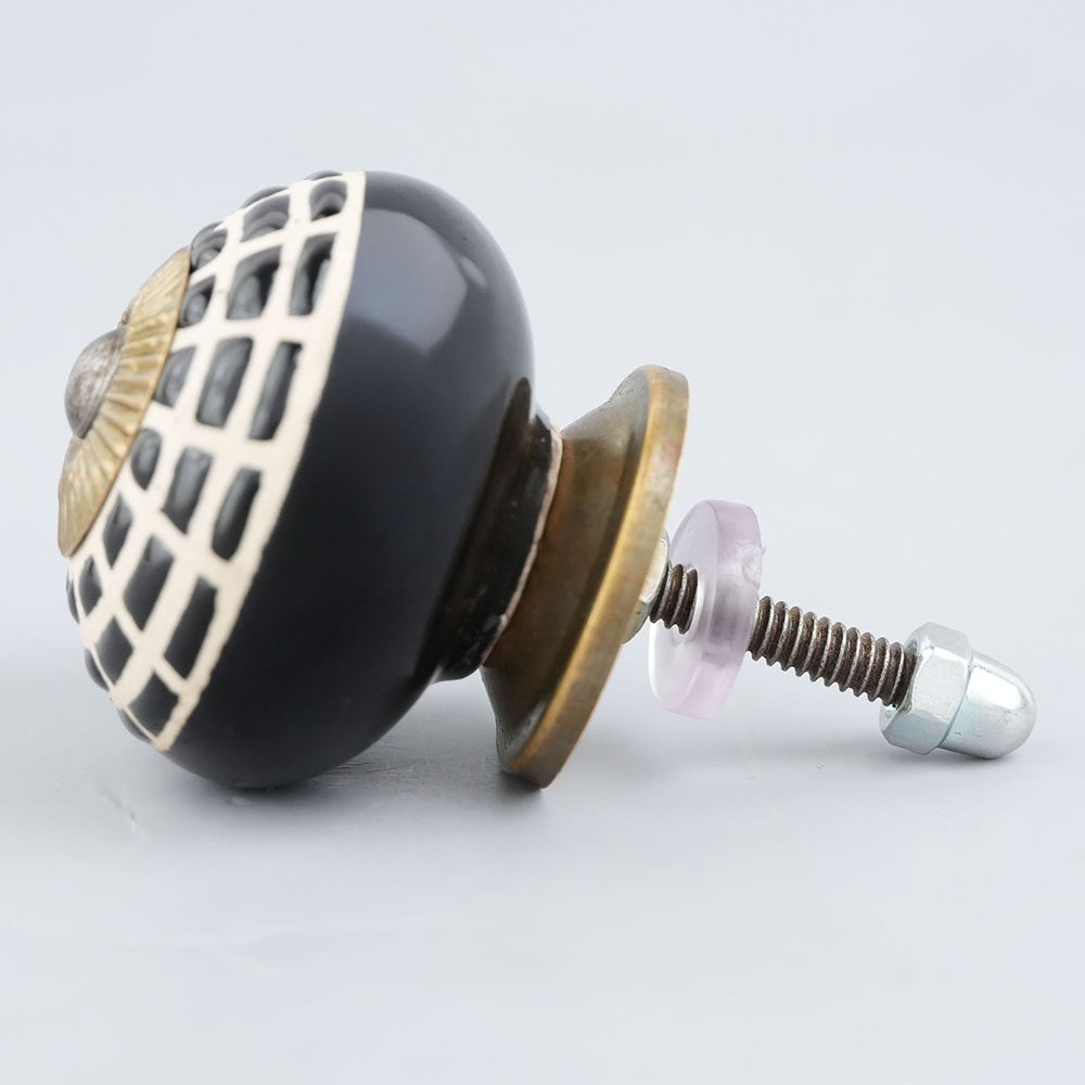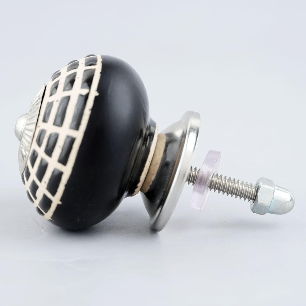 Black Spider Net Etched Ceramic Cabinet Knobs. Ideal for Drawer, Dresser, Cabinet, Wardrobe, Cupboard and Almirah.