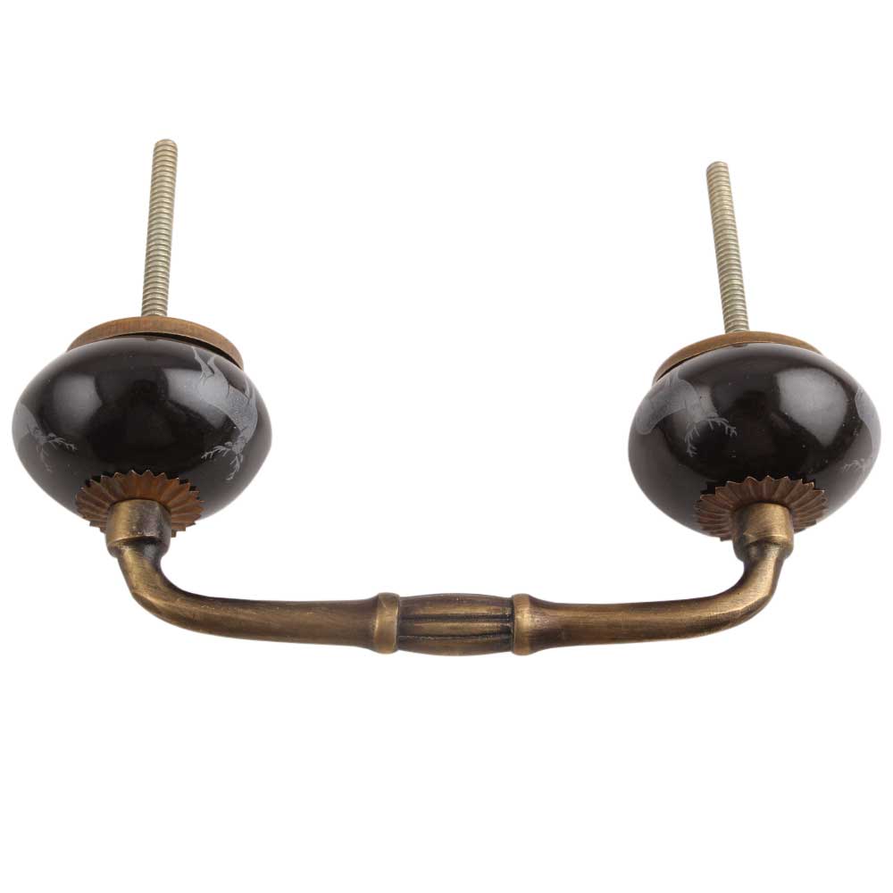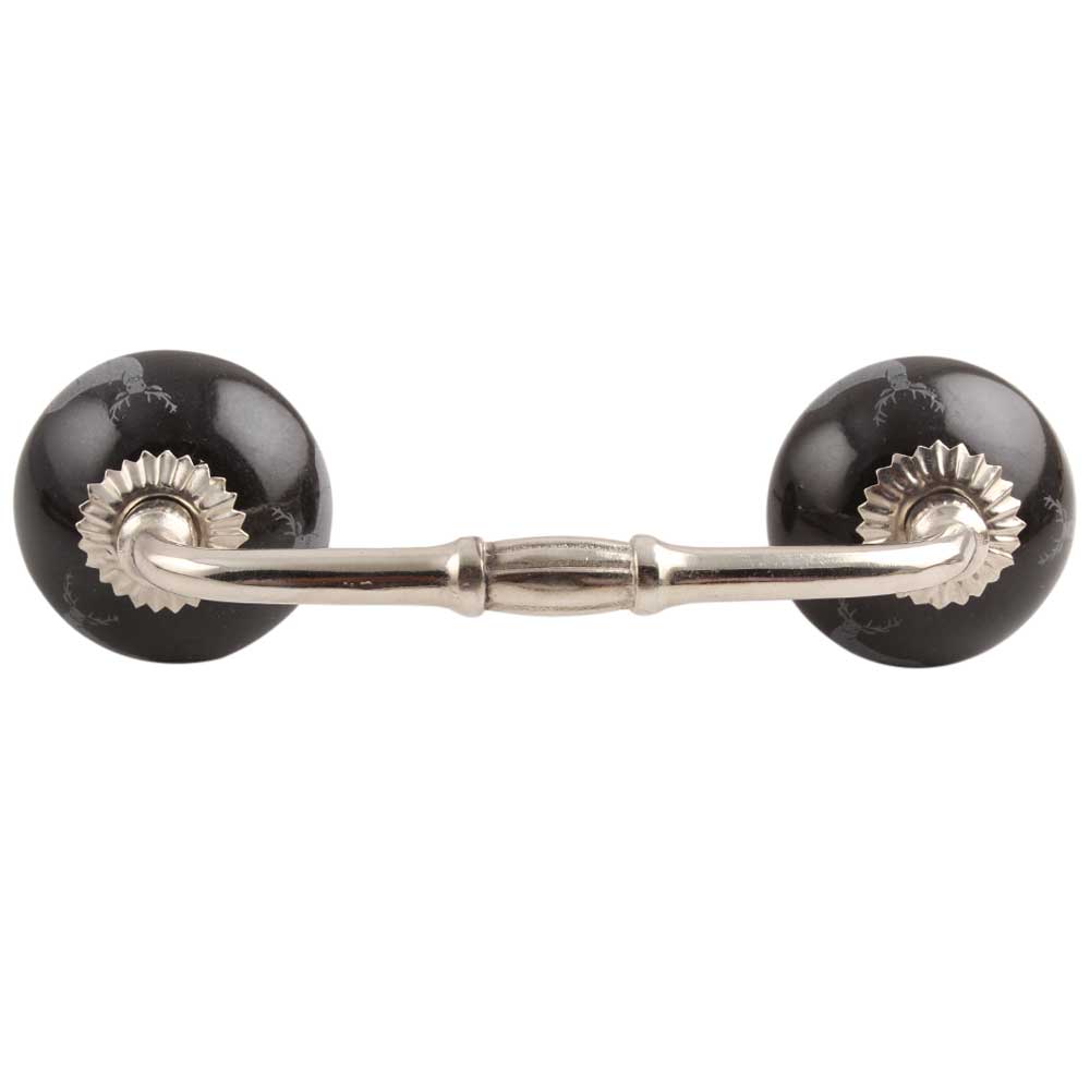 Black Standing Rein Deer Ceramic Bridge Handle. Ideal for Drawer, Dresser, Cabinet, Wardrobe, Cupboard and Almirah.