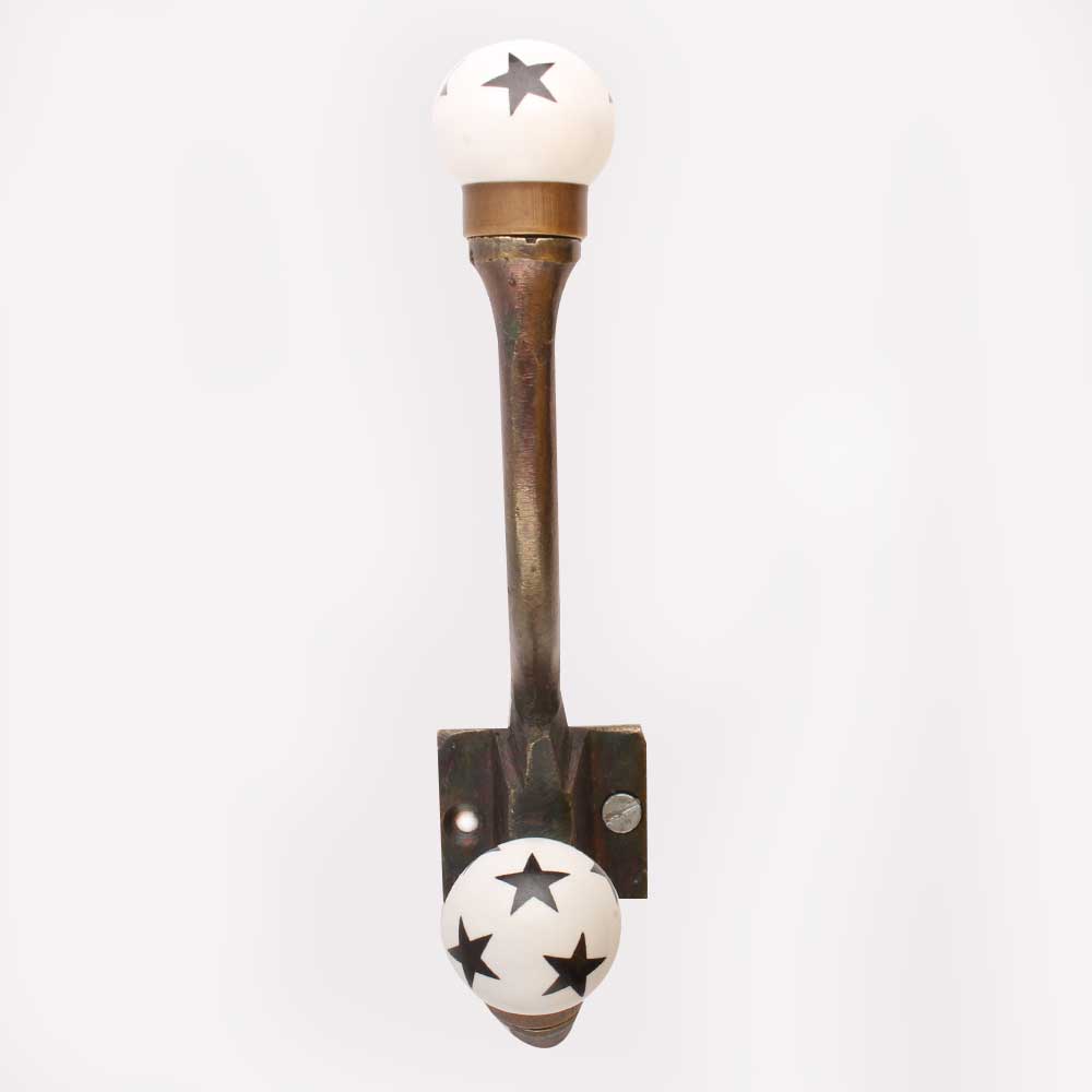Black Star Iron Hook-Ehg-94. A Perfect Complement to the Soft Tone of the Wood are these White Traditional Hat Amp; Coat Hook Made of Genuine Porcelain and Brass. It can be use to Hang Jewellery, Leashes, Towels, Scarves, Light Weight Sweaters, Caps Etc.