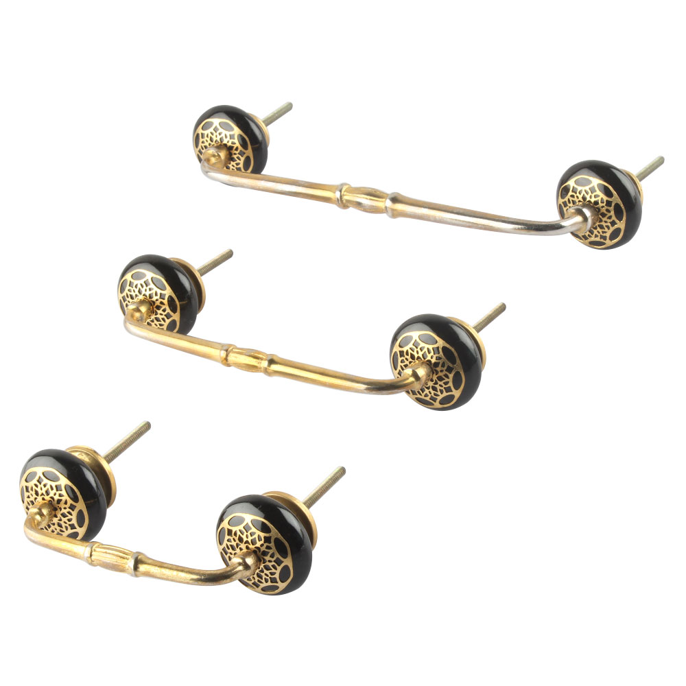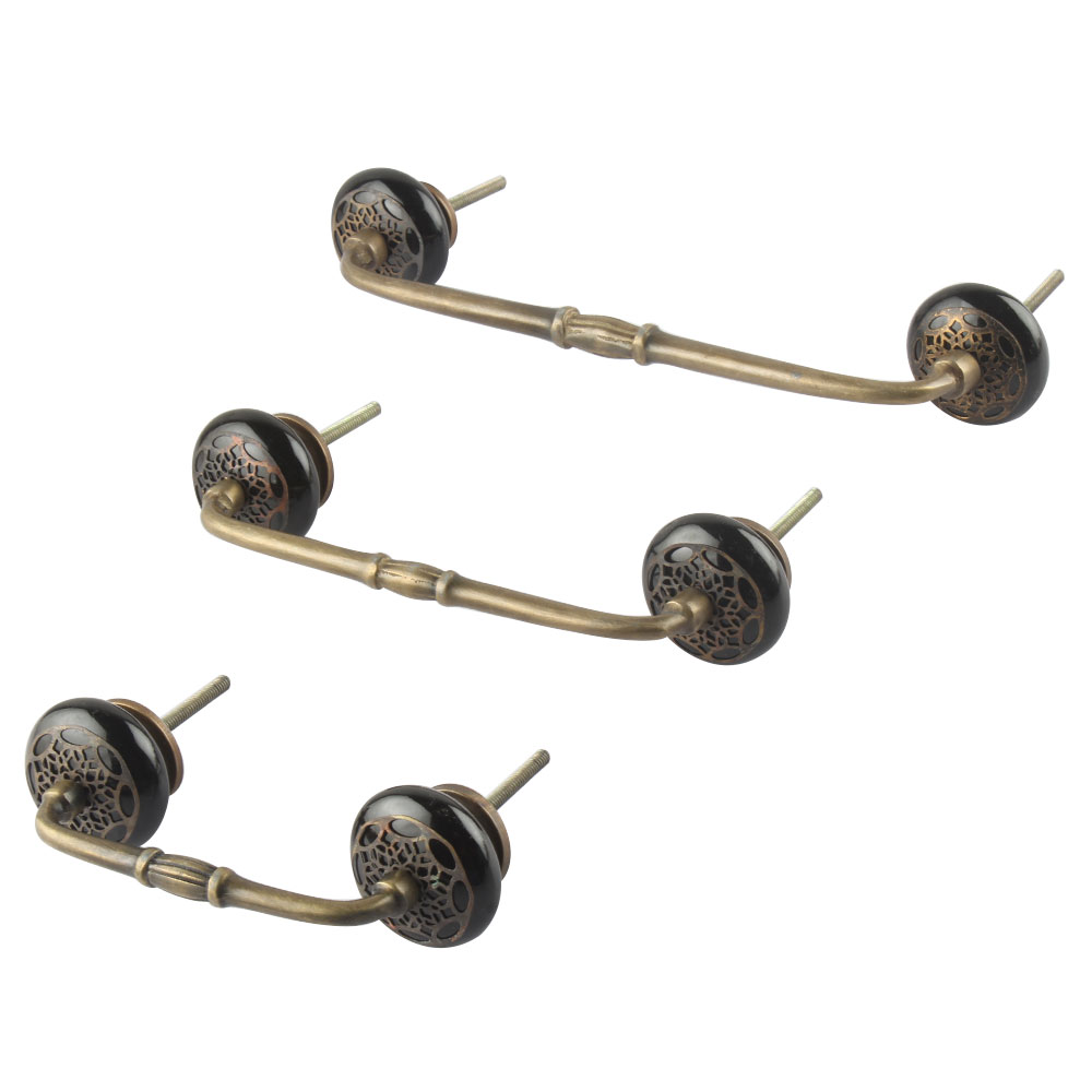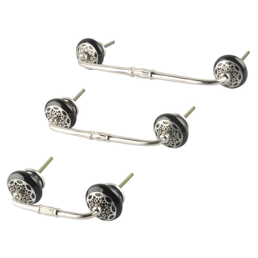 Black Strewn Flat Ceramic Bridge Handle. Ideal for Drawer, Dresser, Cabinet, Wardrobe, Cupboard and Almirah.