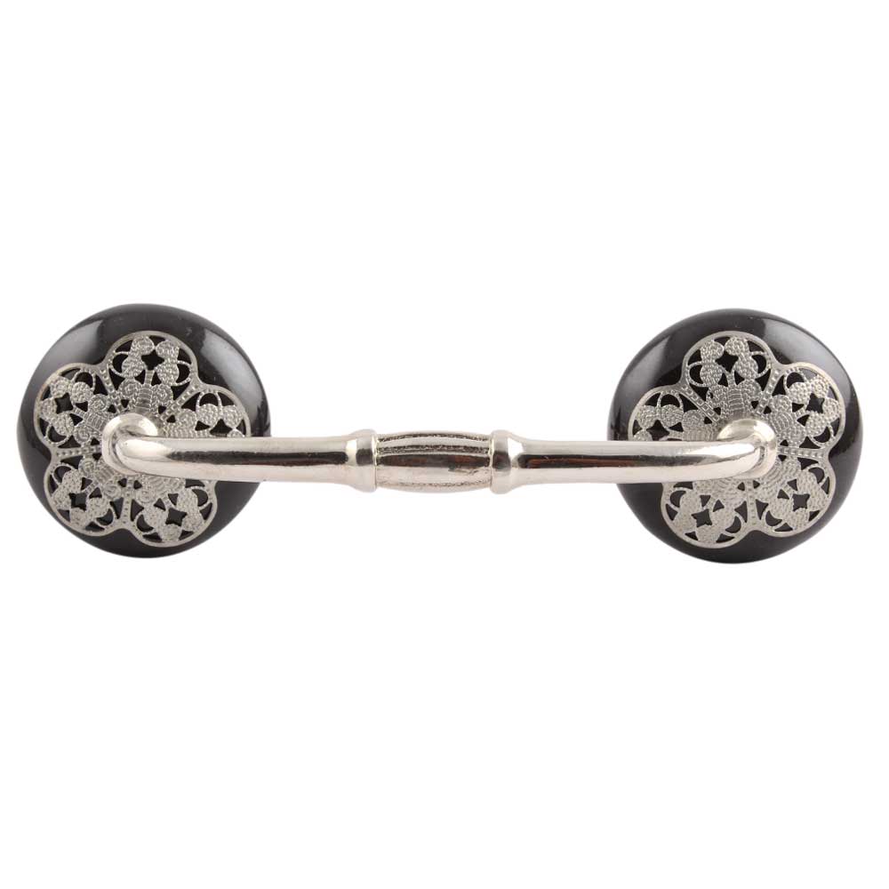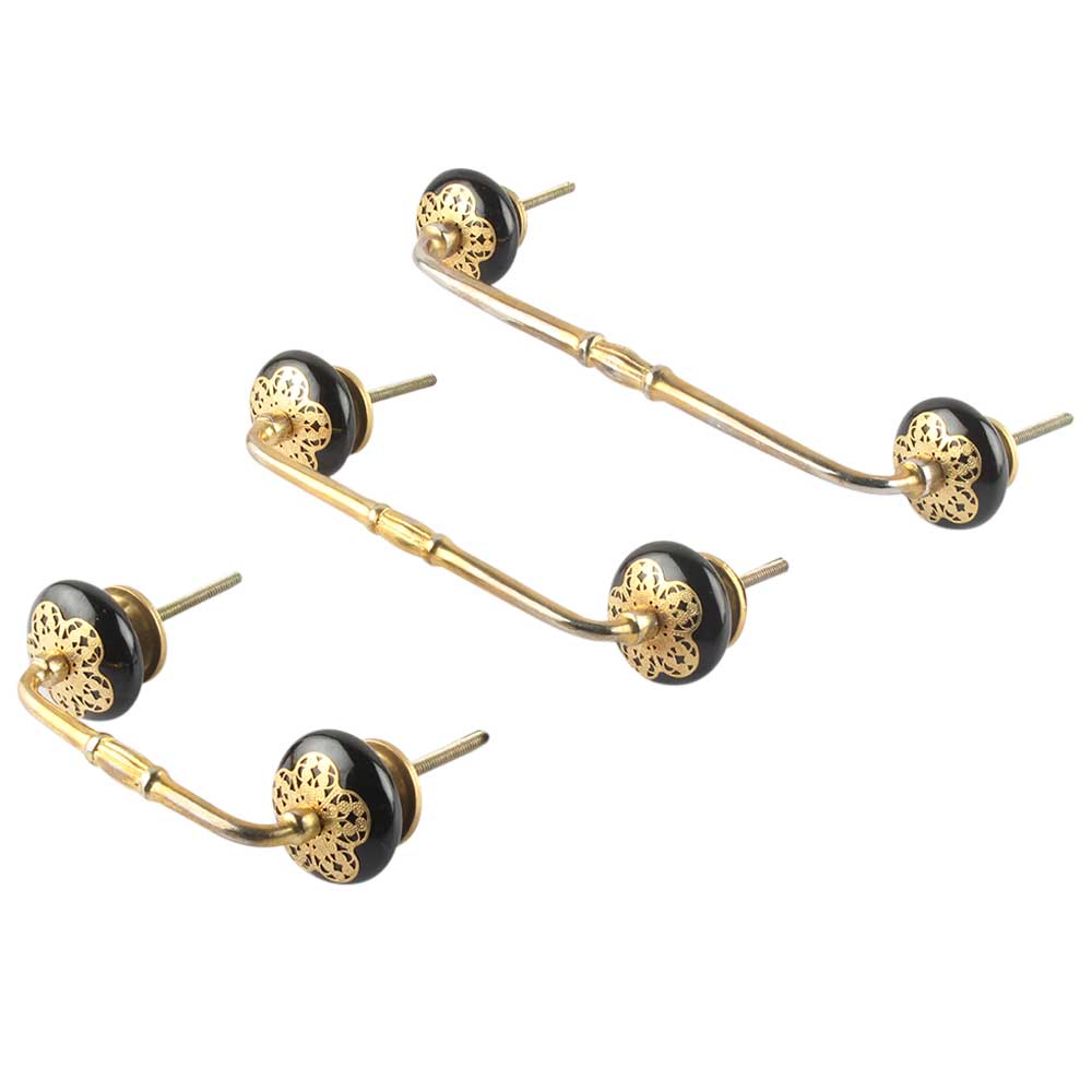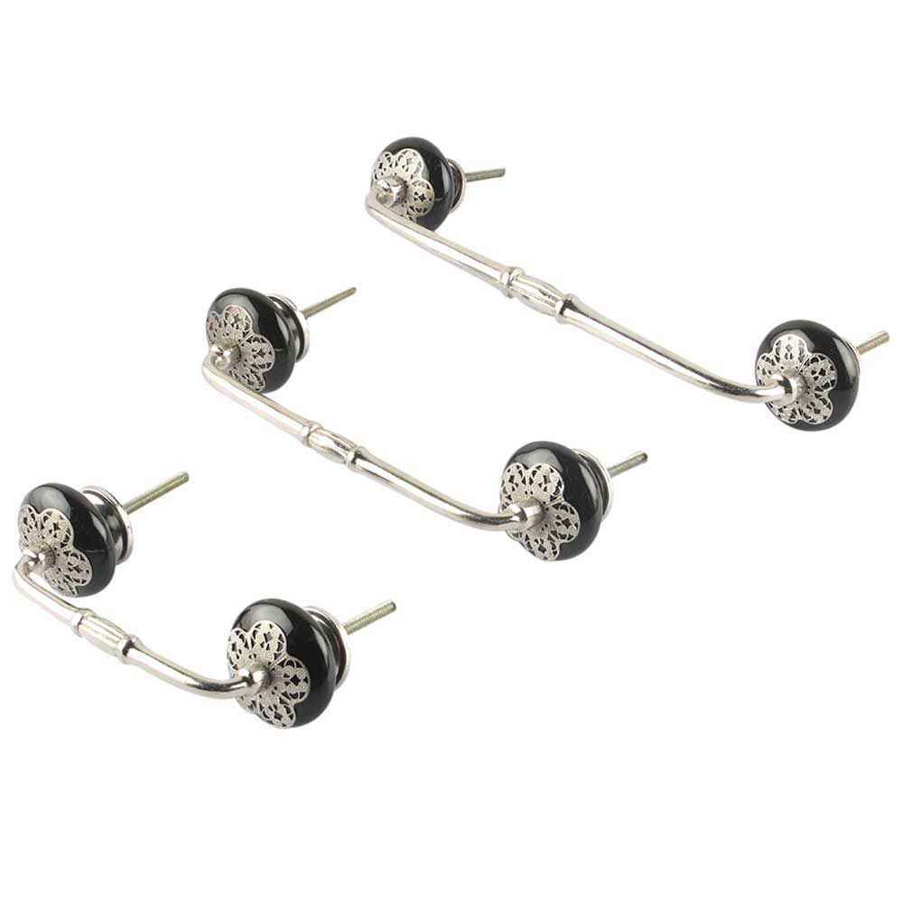 Black Strewn Flat Ceramic Bridge Handle. Ideal for Drawer, Dresser, Cabinet, Wardrobe, Cupboard and Almirah.