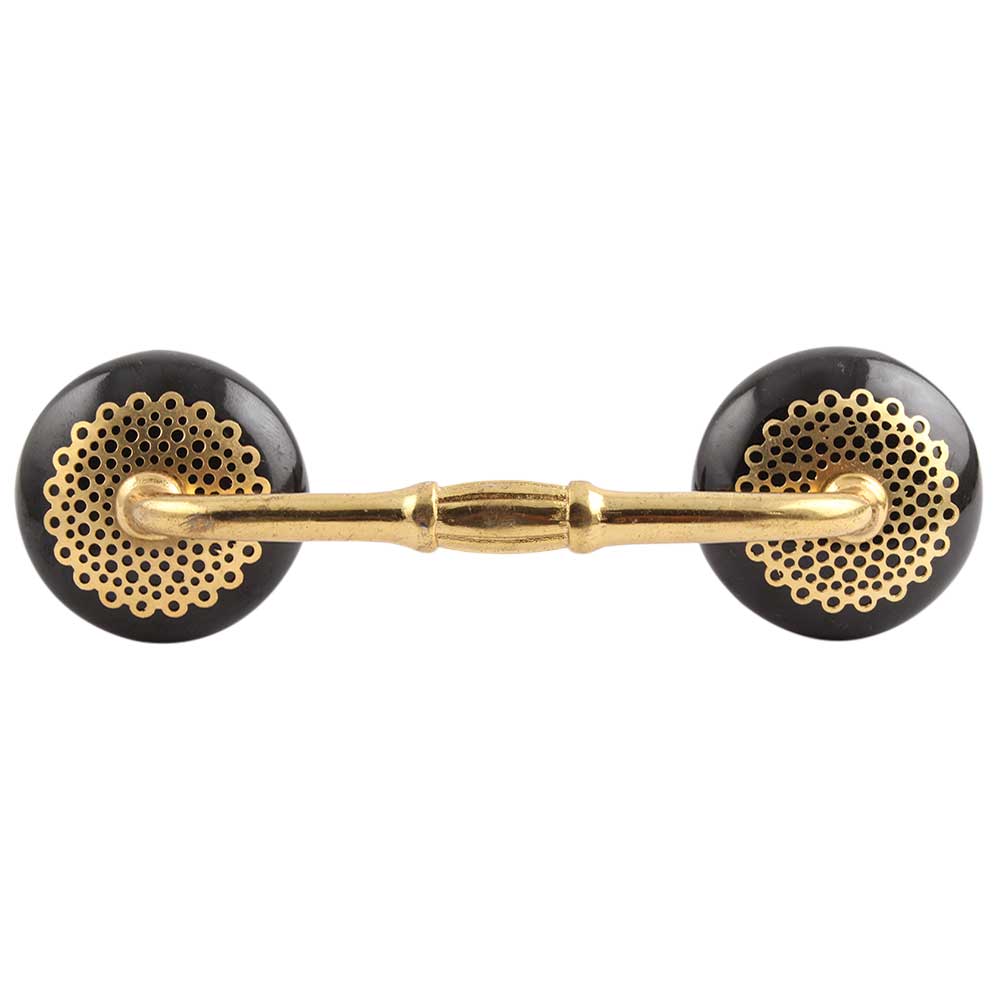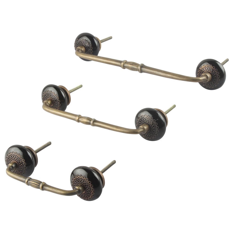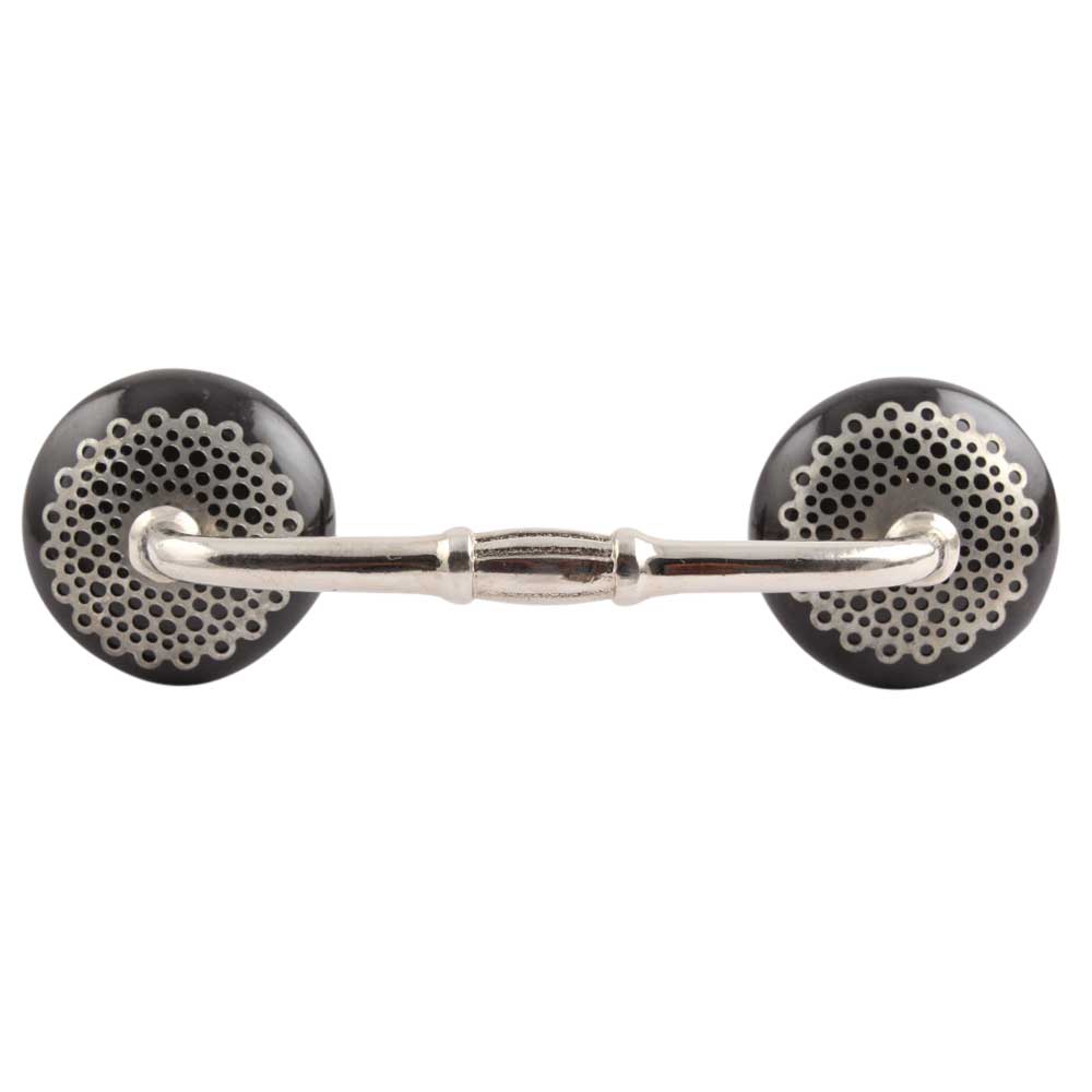 Black Strewn Flat Ceramic Bridge Handle. Ideal for Drawer, Dresser, Cabinet, Wardrobe, Cupboard and Almirah.