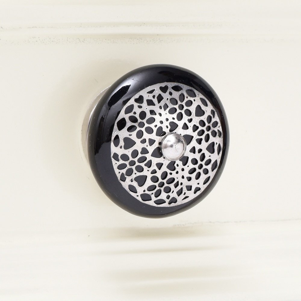 The flat, sleek shape of this ceramic knob is accentuated by the unique speckled pattern, offering a subtle contrast to the rich black color. This design creates a smooth yet textured finish that catches the light beautifully, adding depth and visual interest without overpowering your furniture. It’s ideal for creating a clean, contemporary look with just the right amount of character.