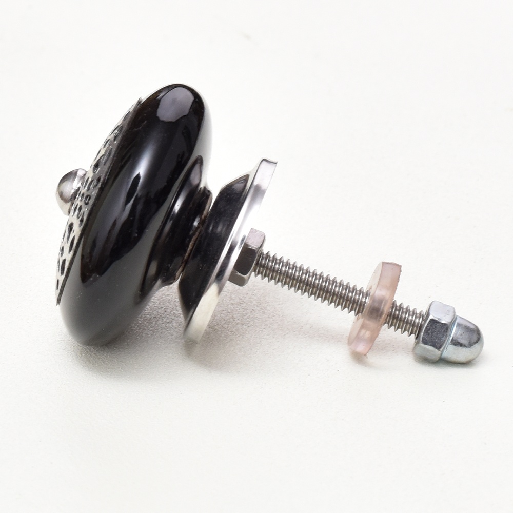 Installing the Black Strewn Flat Ceramic Knob is quick and easy. Simply replace your existing knobs or handles with this sleek design for an instant update to your furniture. The included screws make the installation process hassle-free, even for DIY enthusiasts or those looking for a simple home improvement project.