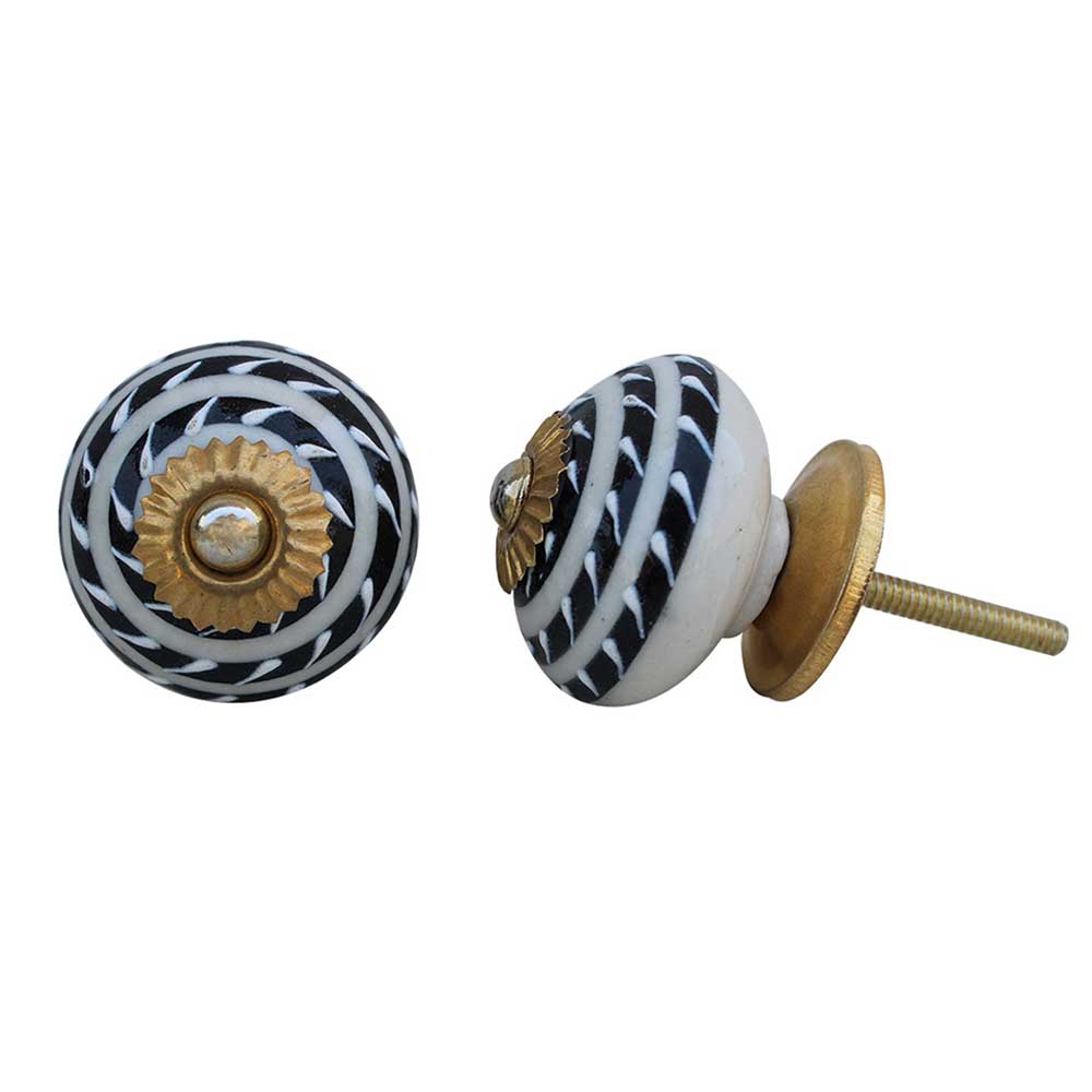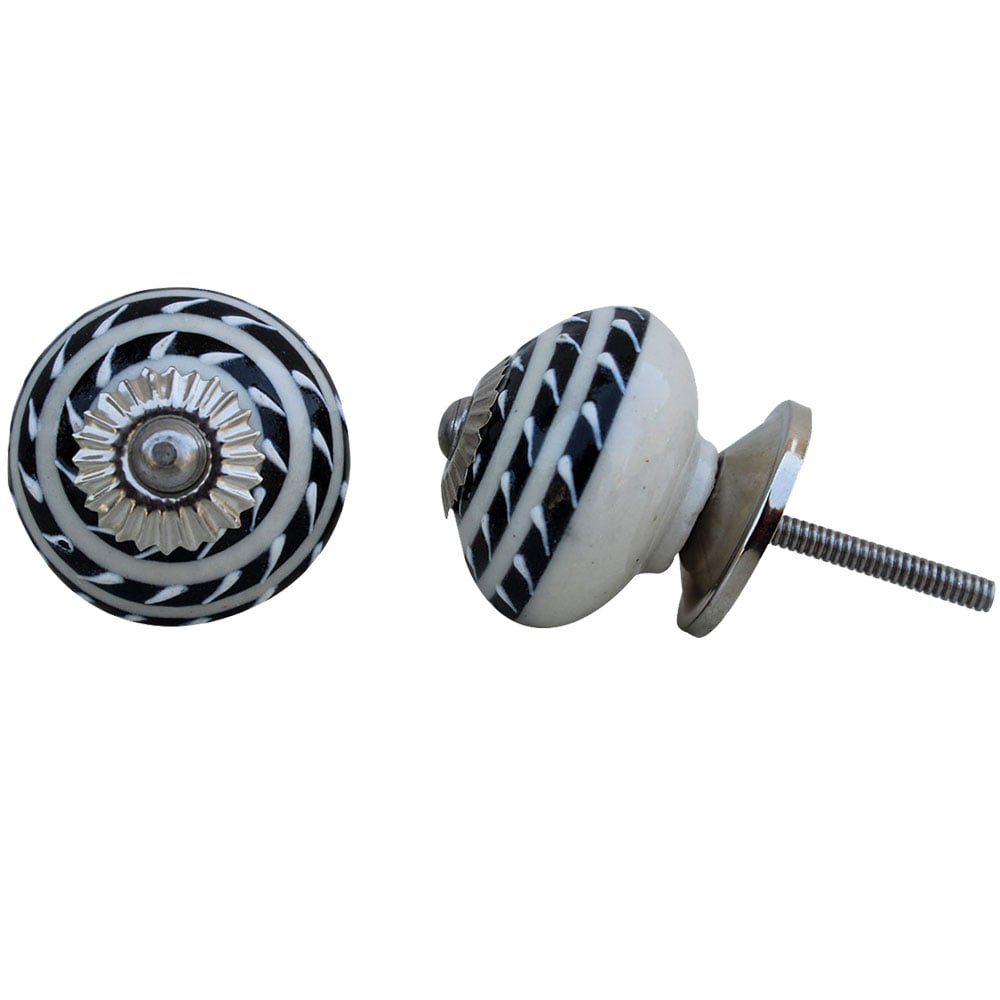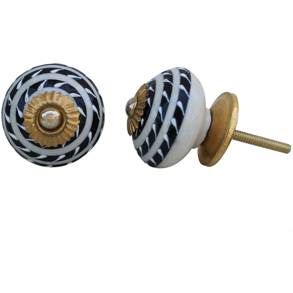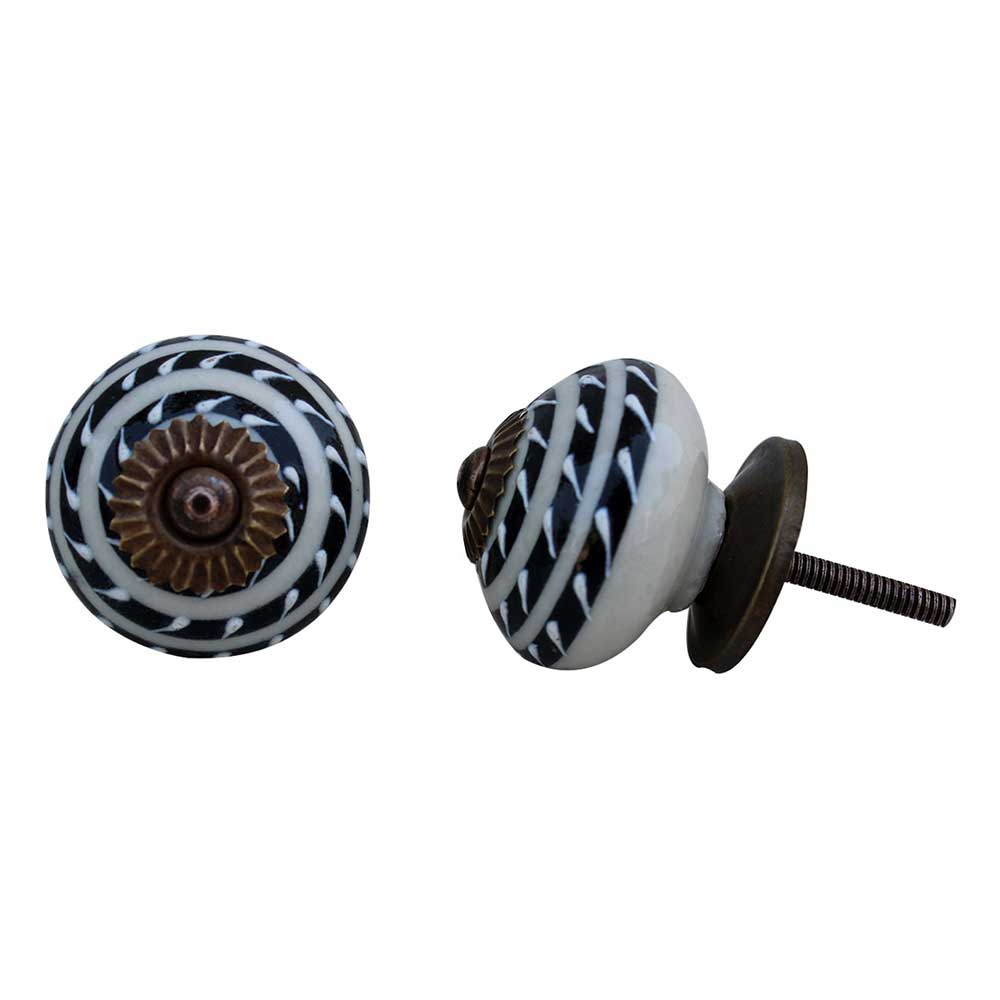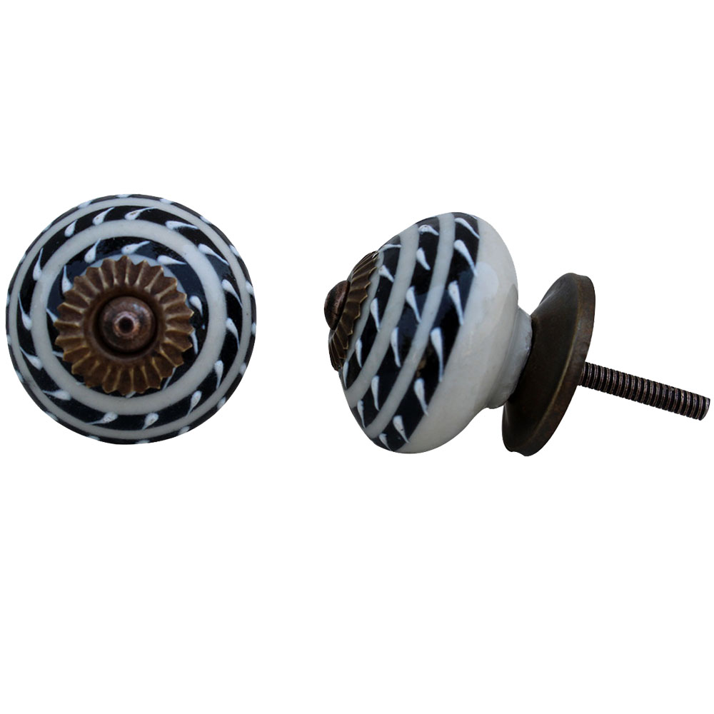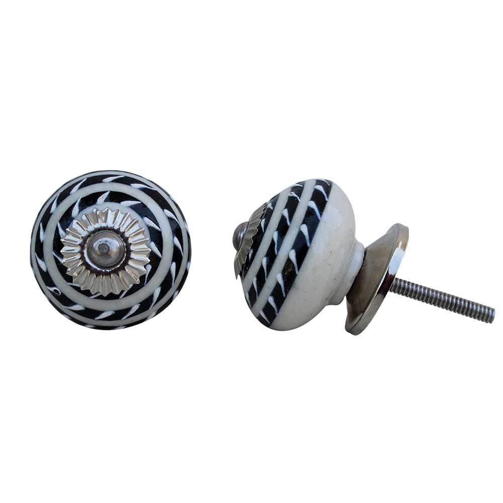 Black Striped Ceramic Knob