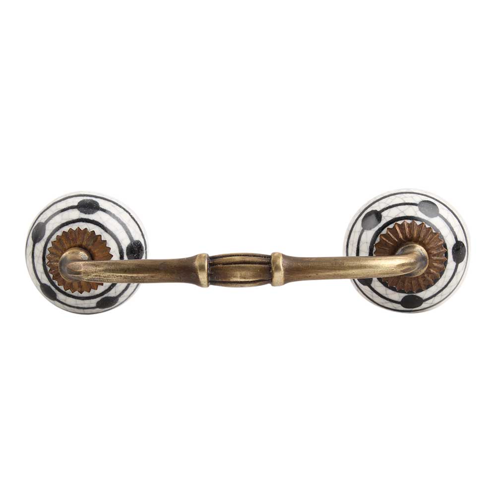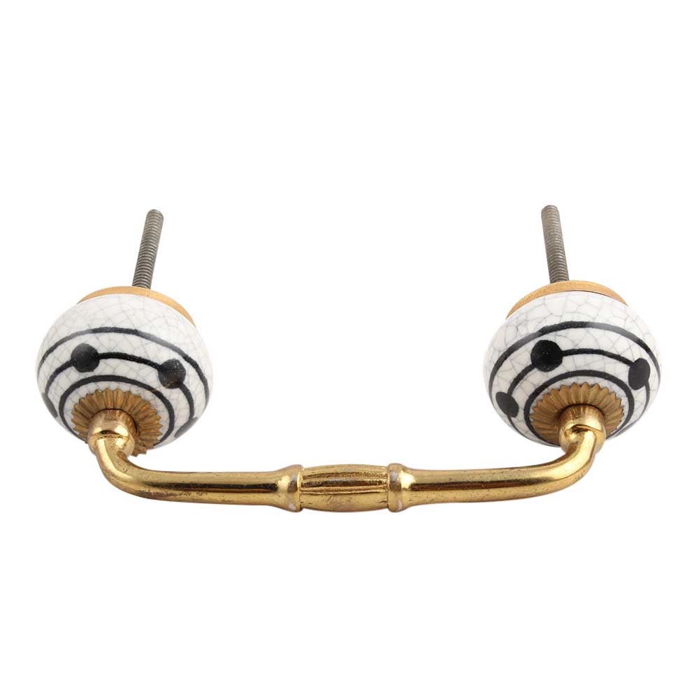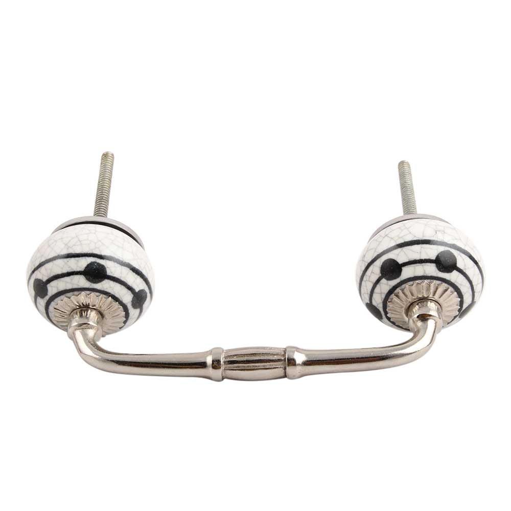 Black Striped Dotted Crackle Ceramic Bridge Handle. Ideal for Drawer, Dresser, Cabinet, Wardrobe, Cupboard and Almirah.