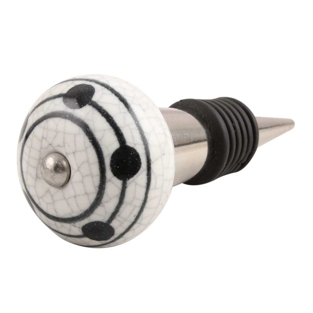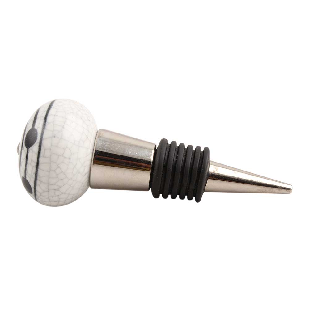 Black Striped Dotted Crackle Ceramic Wine Stopper