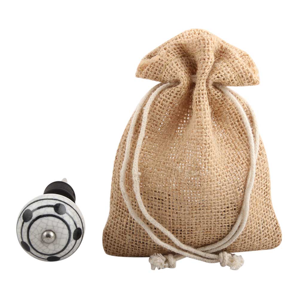 Black Striped Dotted Crackle Ceramic Wine Stopper.zinc alloy wine bottle stopper with attractive Jute Bag Packaging.