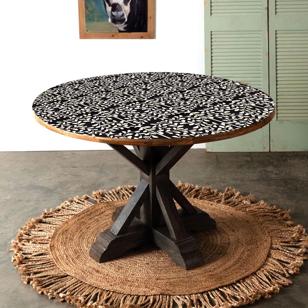 Introducing the exquisite Wood, Acrylic, and Resin Table Top, an artistic masterpiece crafted by skilled Indian artisans. With its captivating design and meticulous attention to detail, this table top is truly a sight to behold. The striking black background sets the stage for an elegant display of white leaf patterns, adding a touch of sophistication and charm to any dining table or coffee table. Handmade with precision and care, this table top serves a dual purpose. Firstly, it enhances the aesthetic appeal of your home, creating a captivating focal point that will impress guests and elevate the ambiance. Secondly, it provides practicality by safeguarding your table from dust and daily wear and tear, thanks to its superior quality craftsmanship. With two options available, circular and rectangular, you have the freedom to choose the shape that best complements your existing decor. The durability of this table top ensures that it will grace your living spaces for years to come, outlasting ordinary alternatives. Whether as a gift for your loved ones on special occasions or as a personal indulgence, this Wood, Acrylic, and Resin Table Top is an ideal choice, blending artistic brilliance with functional elegance.