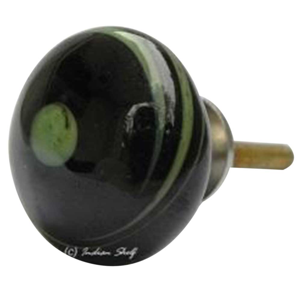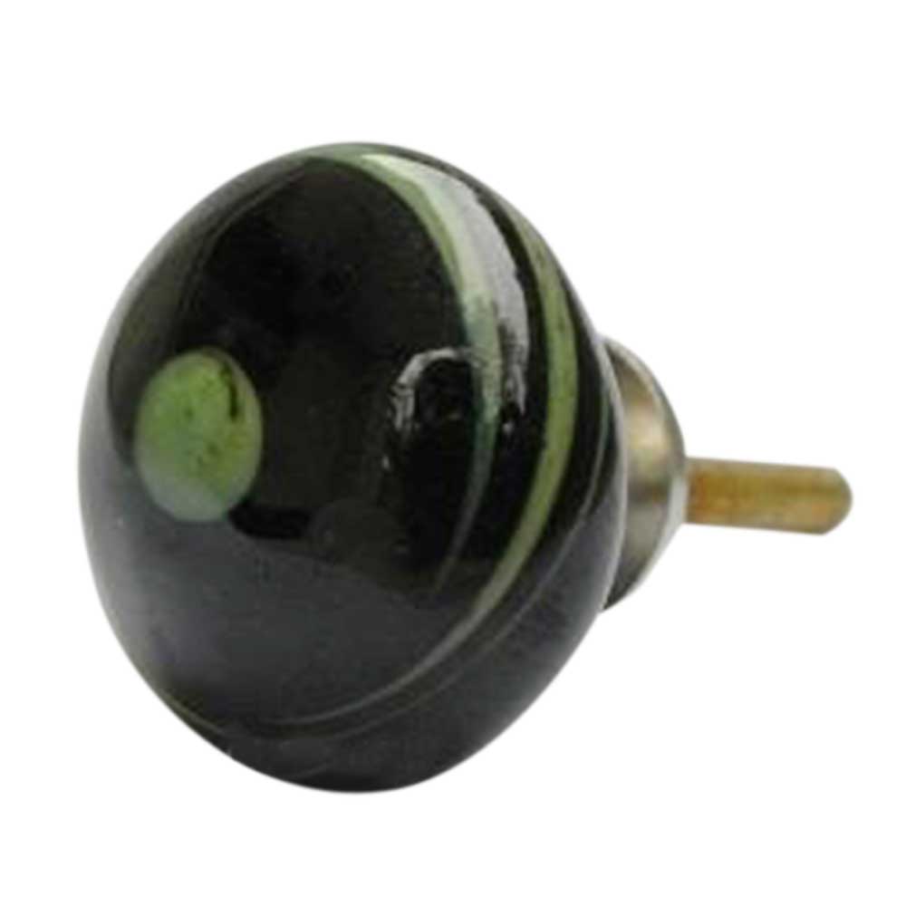Black with Green Striped Glass Knobs. Ideal for Drawer, Dresser, Cabinet, Wardrobe, Cupboard and almirah