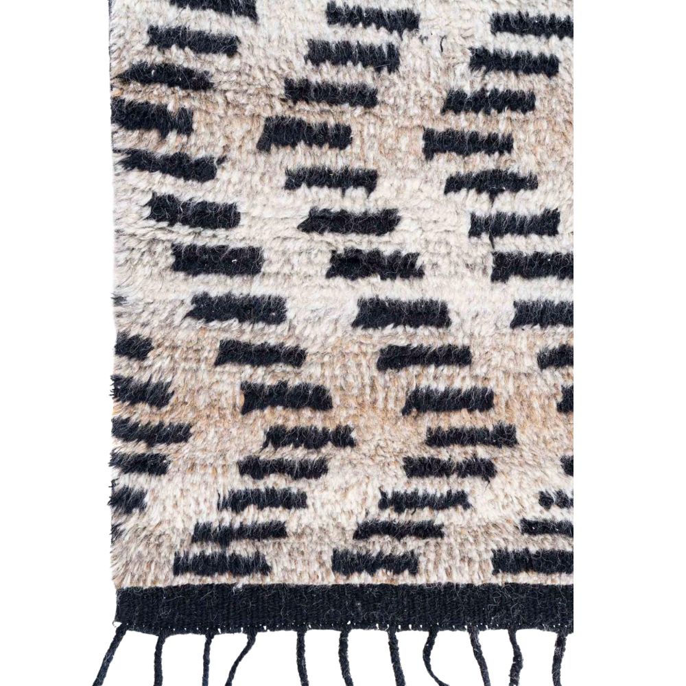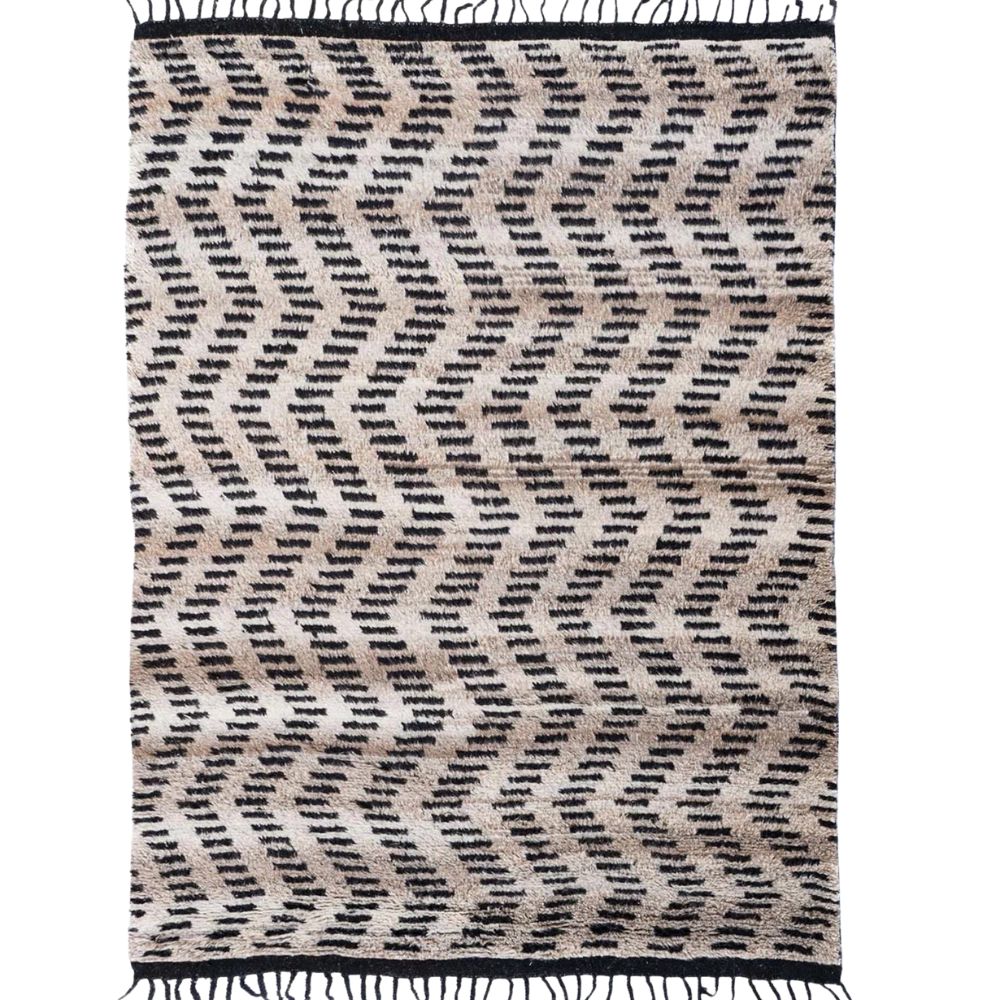 New Moroccan Design Handmade Knotted Carpet White & Black | 100% Woolen | Timeless Comfort Meets Modern Boho Charm Transform your space with the perfect blend of cultural heritage and modern style. Our New Moroccan Design Handmade Knotted Carpet in classic white and black brings the cozy, artisanal warmth of North African tradition into your home with a bold, minimalist twist. Handmade with Purpose & Passion Every rug is lovingly hand-knotted by skilled artisans, using time-honored techniques passed down through generations. Each knot tells a story no two rugs are exactly the same. With subtle variations and organic textures, this carpet is a true work of art made just for your space. 100% Pure Wool Natural, Soft, and Long-Lasting Made entirely from 100% natural wool, this carpet offers exceptional softness underfoot and a plush, cozy feel that synthetic materials simply cant match. Wool is naturally stain-resistant, breathable, and incredibly durable making it perfect for everyday life in busy homes. Iconic Moroccan Pattern Black on White Elegance The design draws from traditional Moroccan Berber motifs, reimagined in a bold black-and-white color.