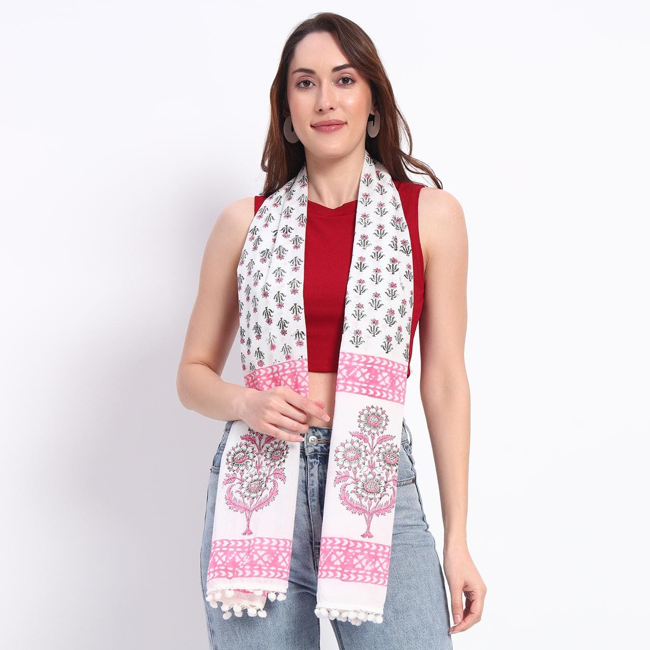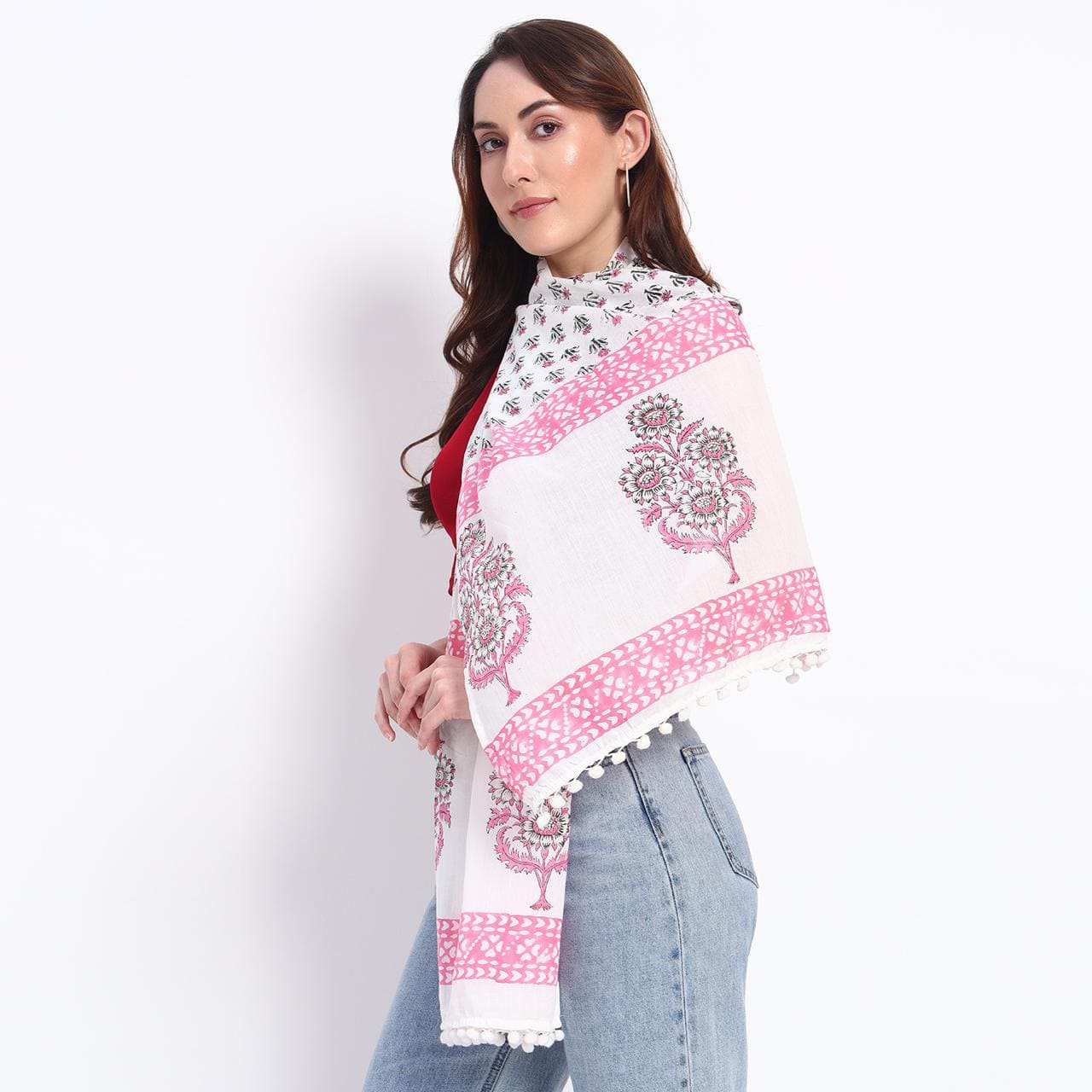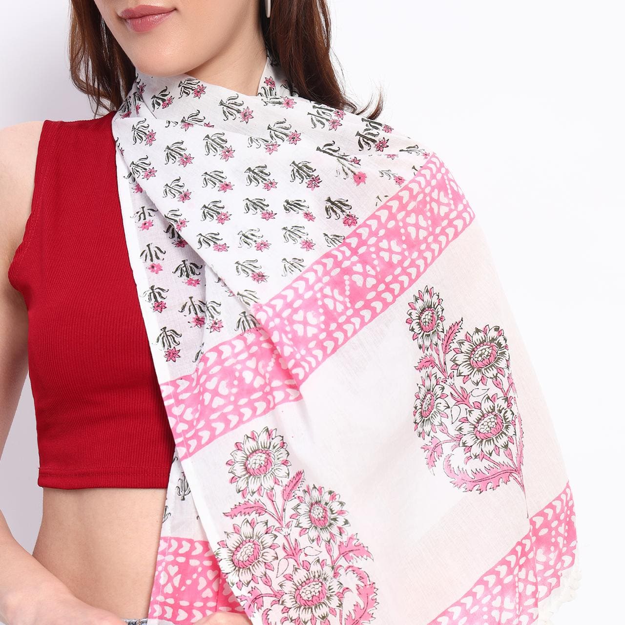 This stole embodies refined elegance, seamlessly blending floral artistry. The soft grey palette, accented by subtle hints of vibrant pink, exudes sophistication and charm. Gracefully versatile, it is the perfect accessory to elevate any ensemble, whether for an intimate gathering or a formal occasion. Designed to drape effortlessly, it adds an air of timeless allure to your wardrobe.
