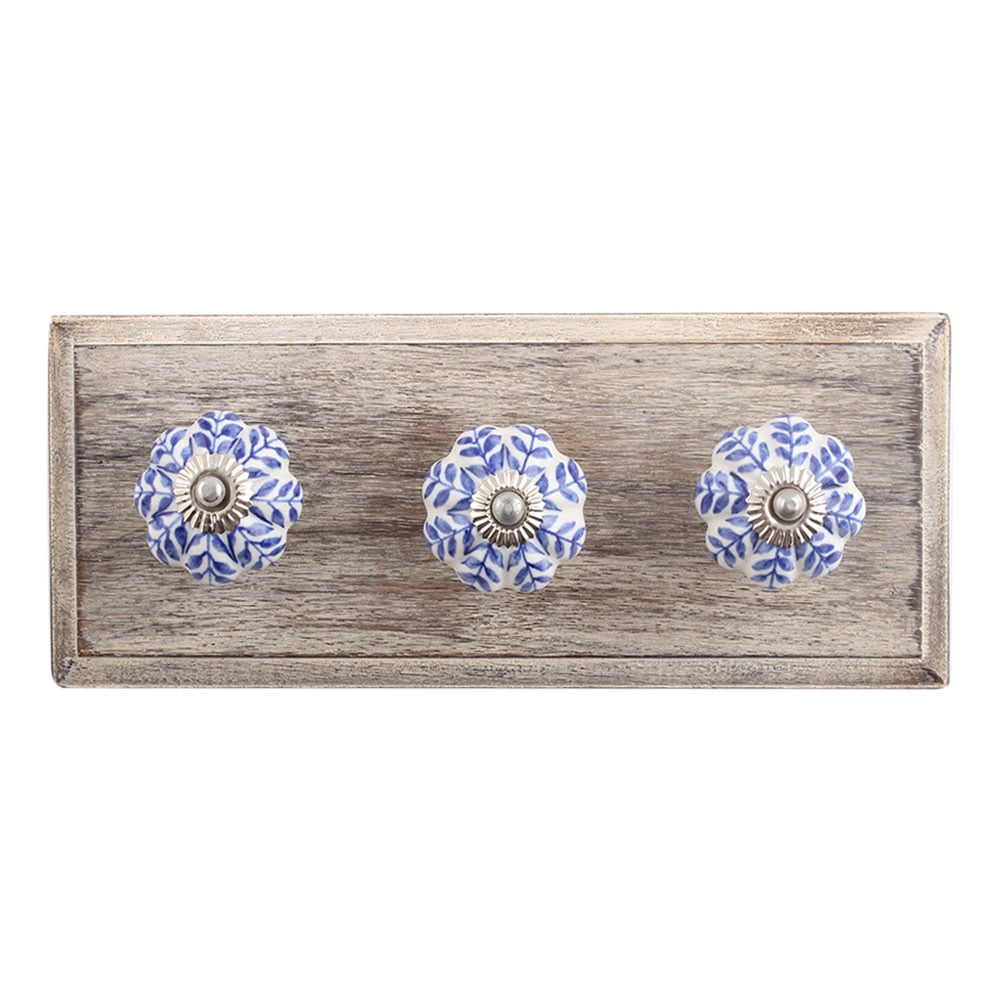 Blue Agapanthus Floral Ceramic Wooden Hooks