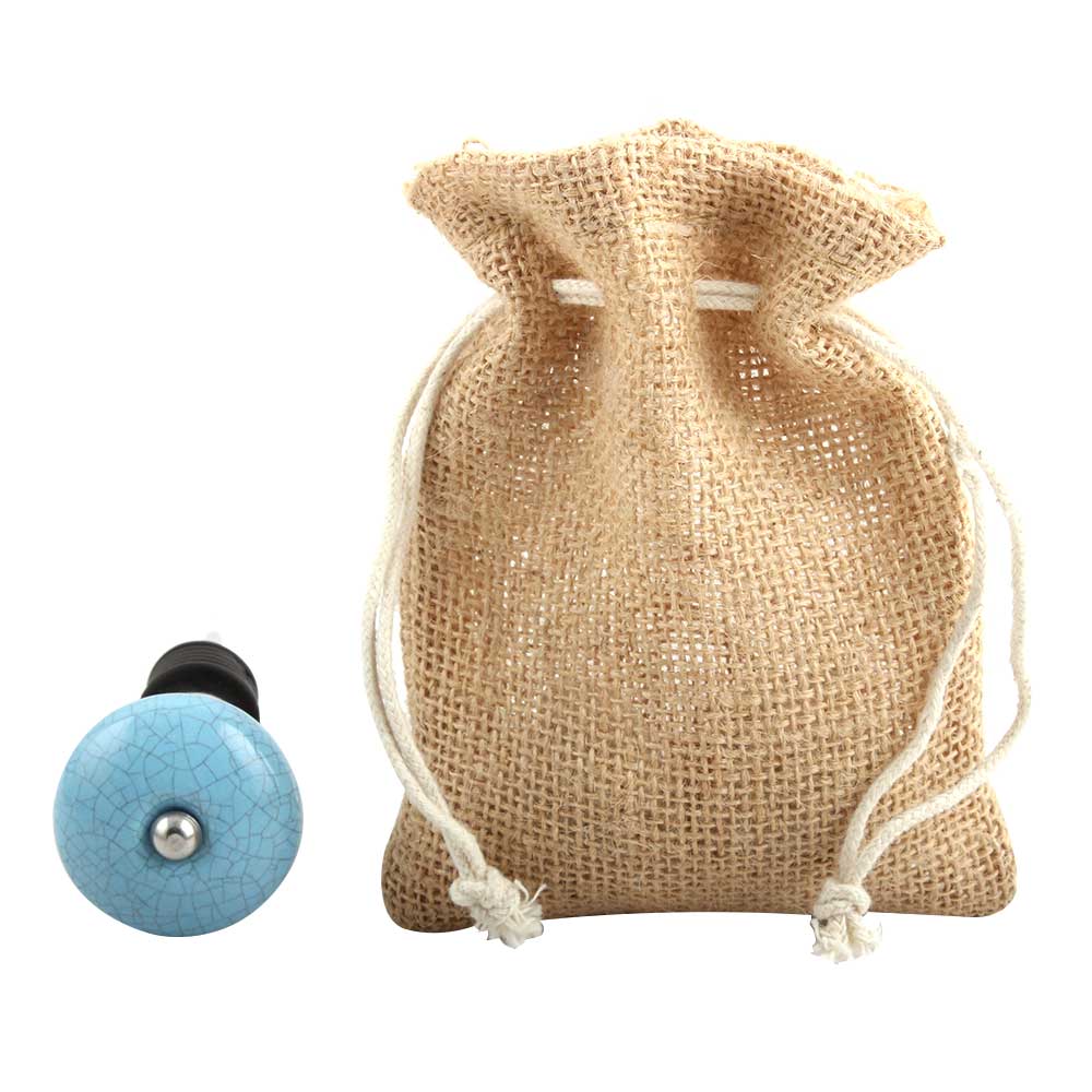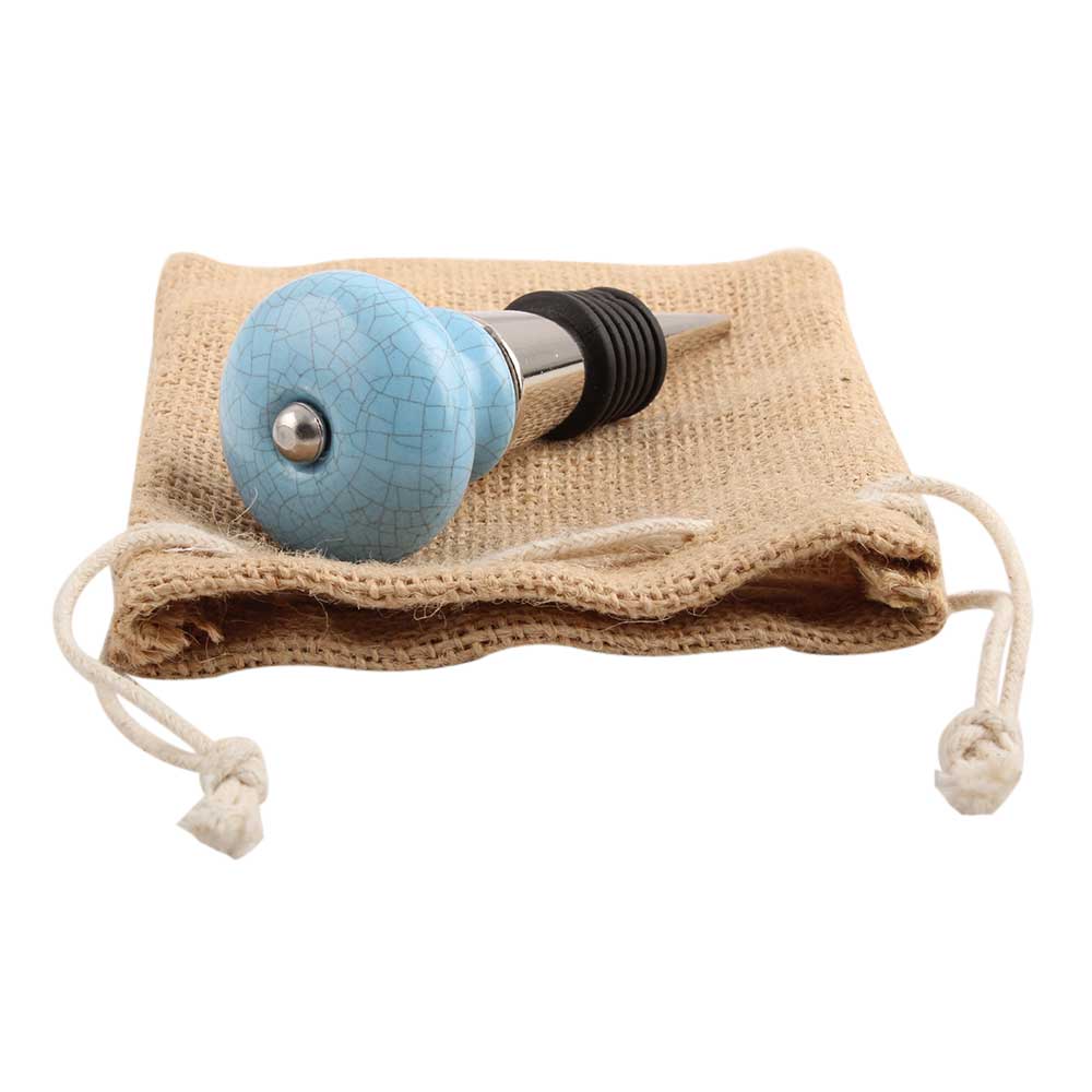 Blue And Black Crackle Ceramic Wine Stopper.zinc alloy wine bottle stopper with attractive Jute Bag Packaging.