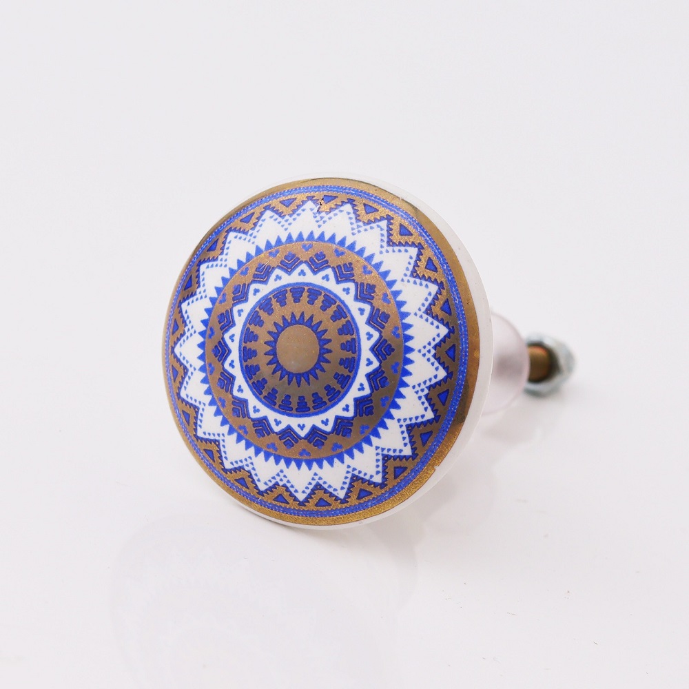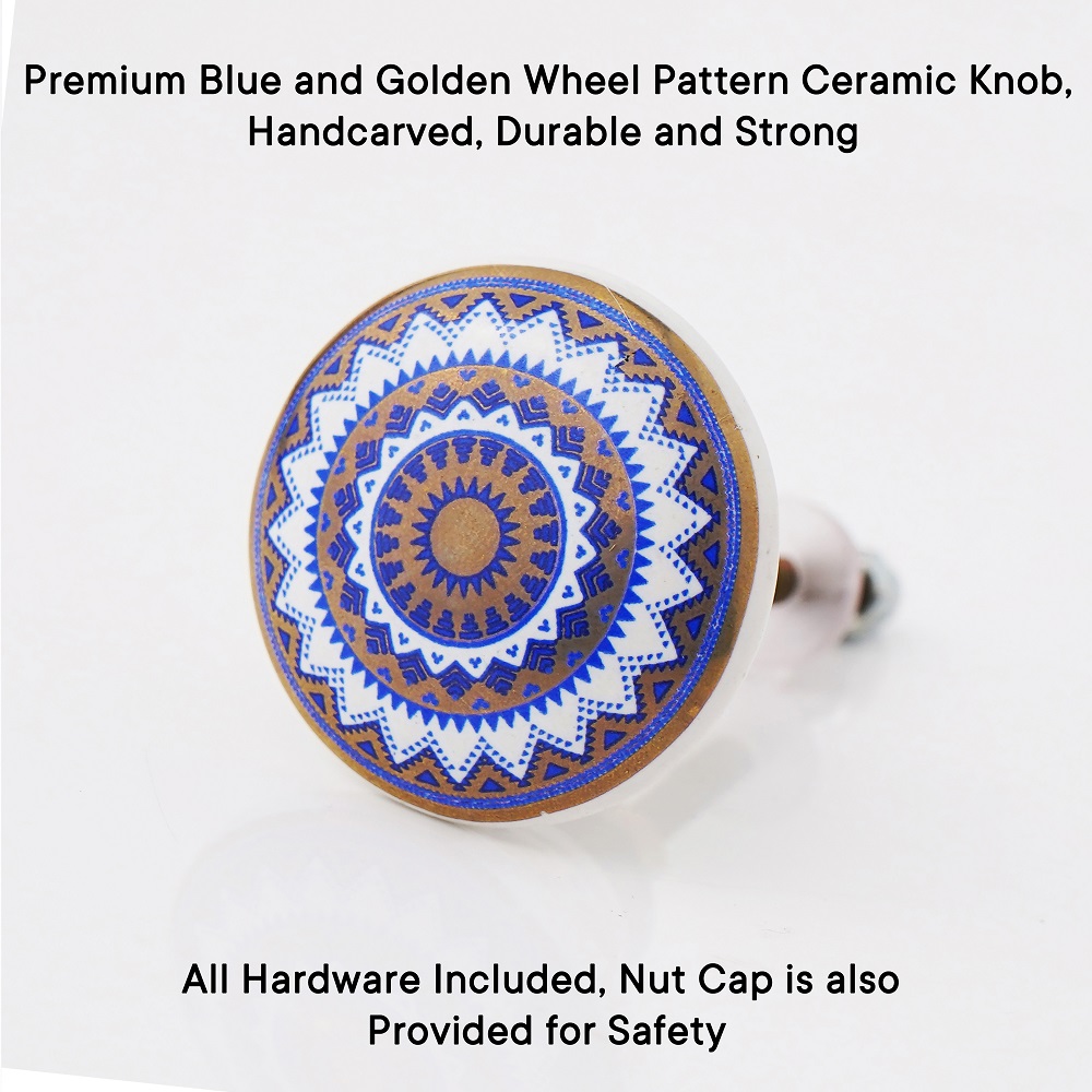 Enhance the beauty of your furniture with the Blue and Golden Wheel Pattern Flat Ceramic Cabinet Knob. The intricate blue and golden wheel design adds a modern yet timeless look, perfect for both contemporary and traditional interiors. This stylish knob brings a vibrant touch to cabinets, drawers, or wardrobes, making them stand out in any space.