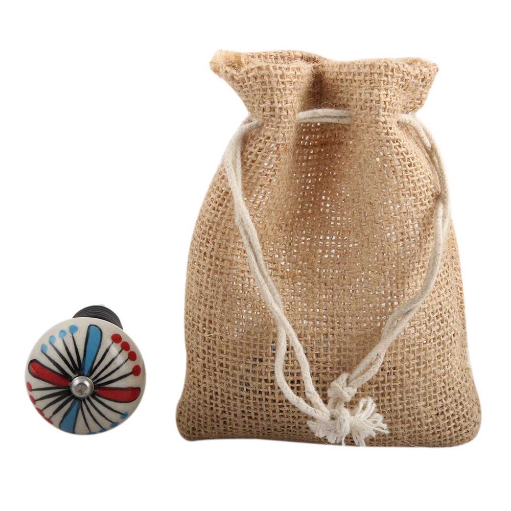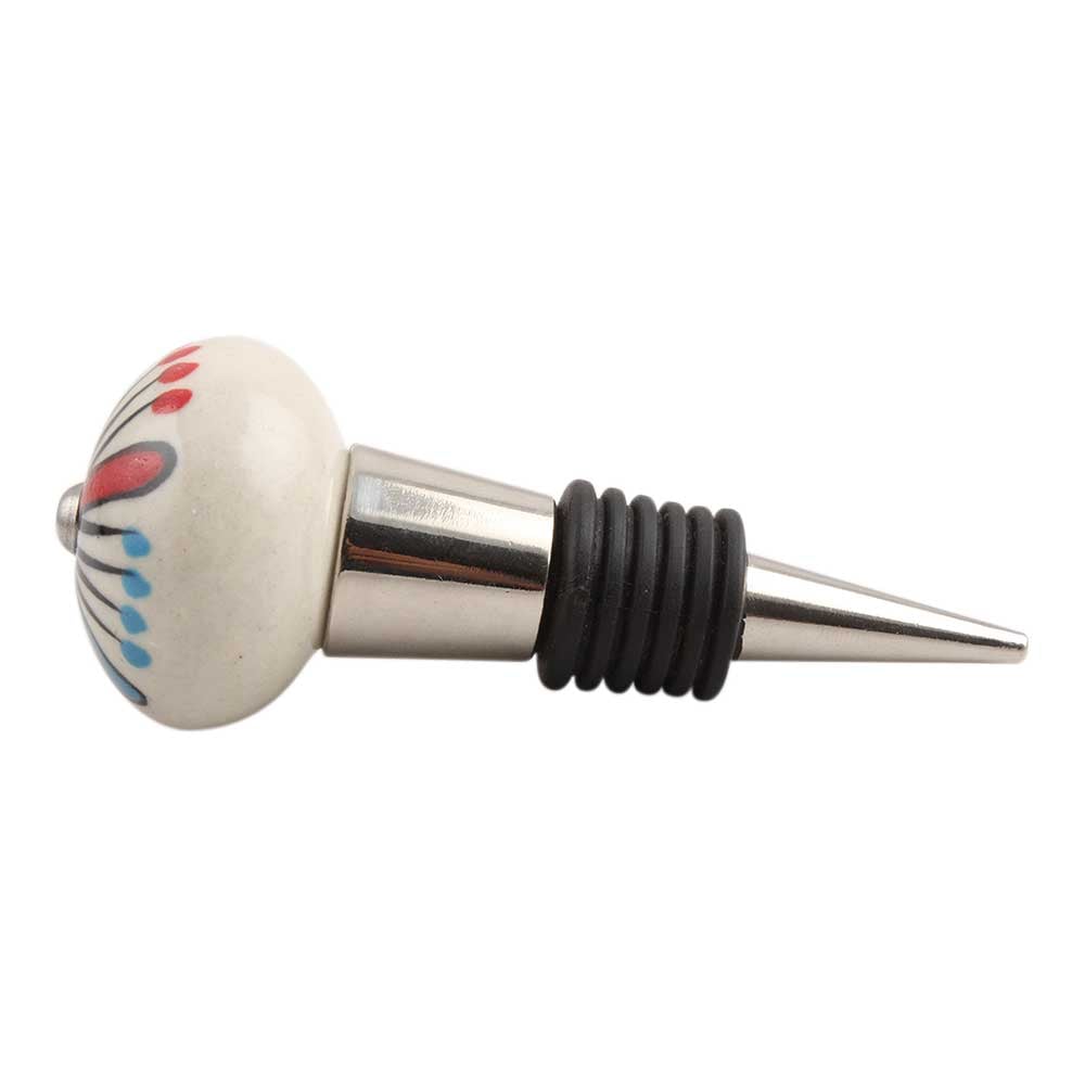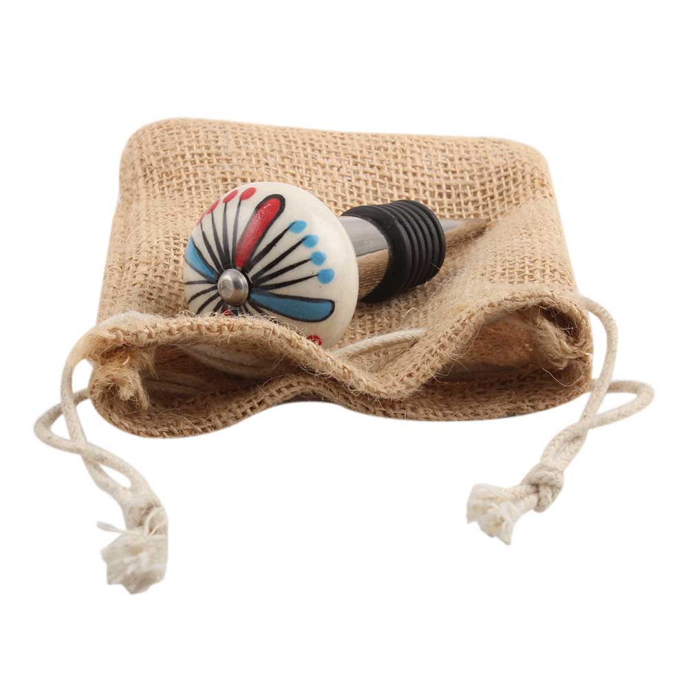 Blue And Red Ceramic Wine Stopper.zinc alloy wine bottle stopper with attractive Jute Bag Packaging.