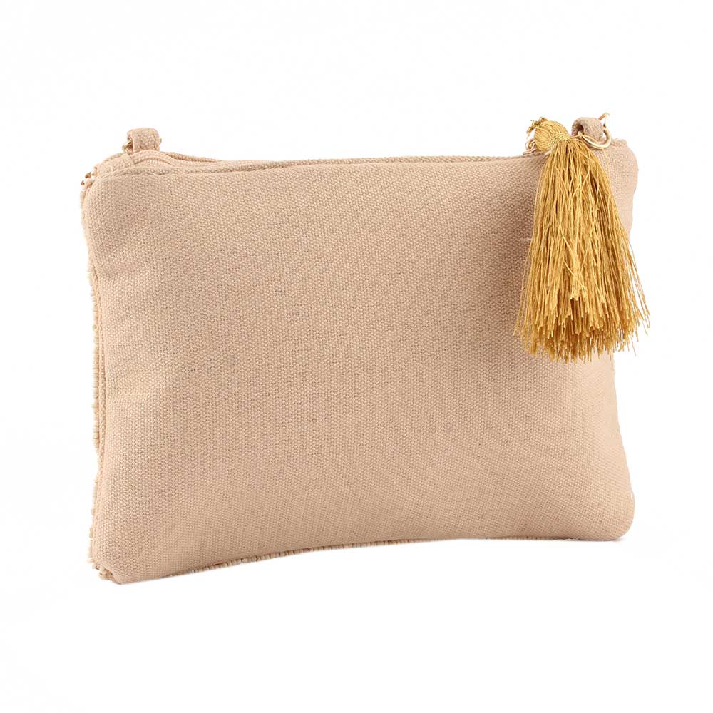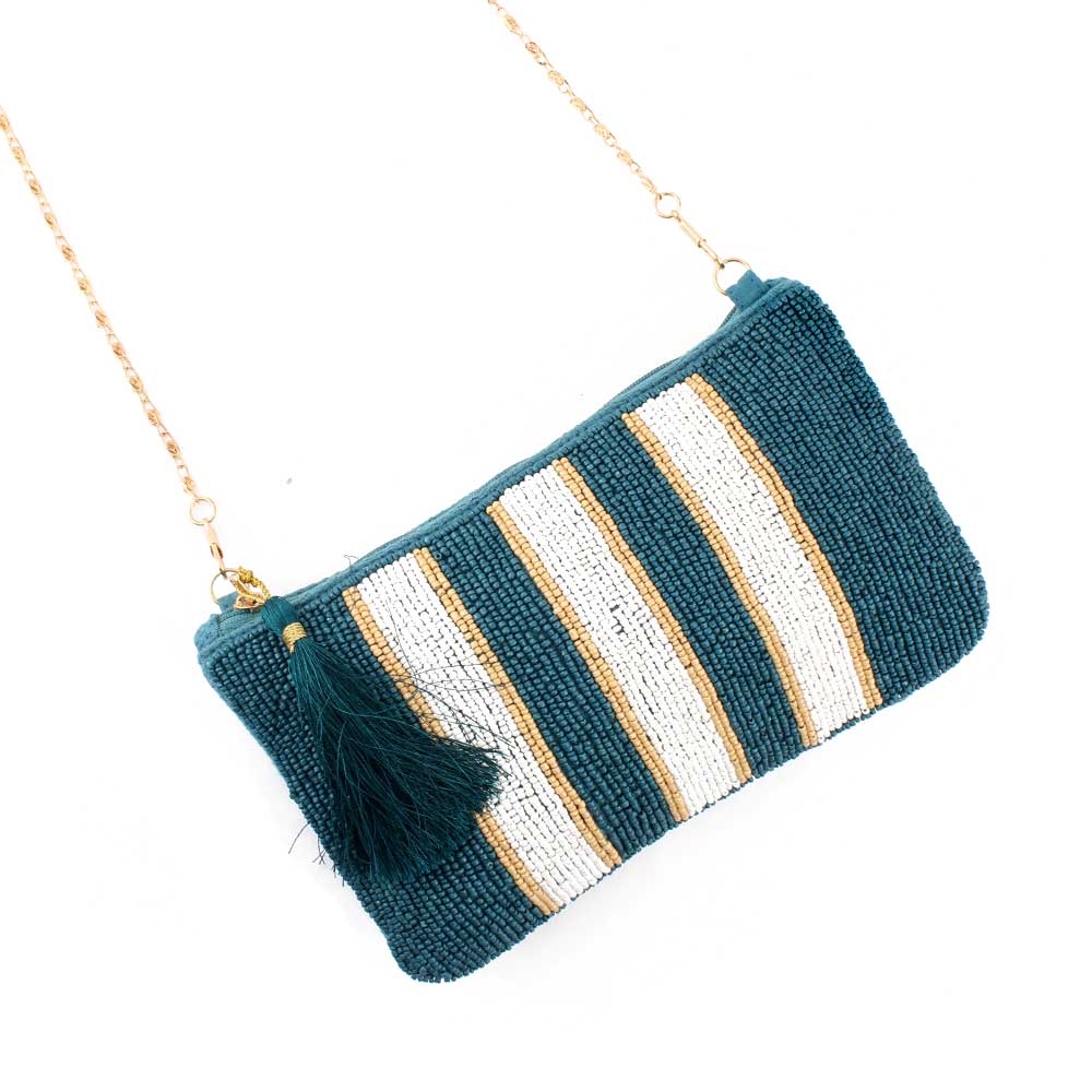 Blue And White Glass Beads Cotton Ziptop Clutch Bag