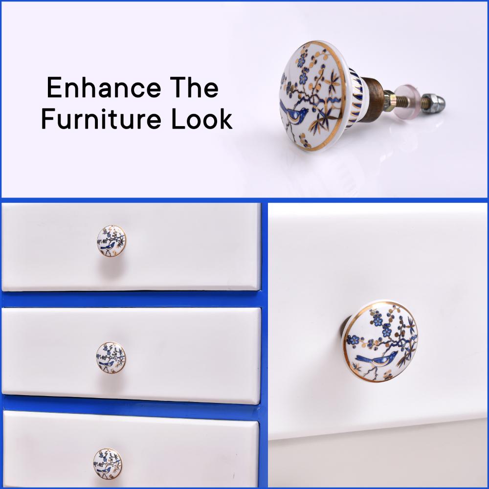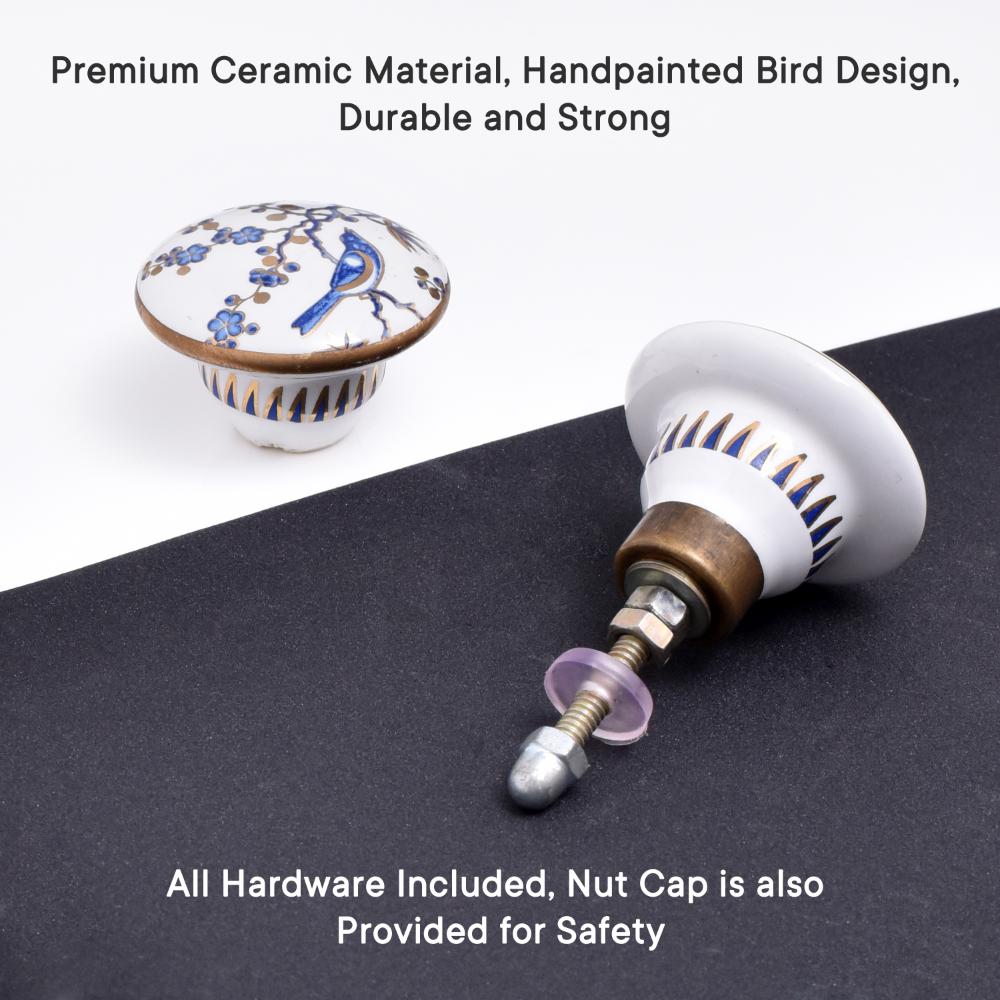 These drawer knobs are handcrafted with care and attention to detail. The hand-painted blue bird, golden berries, and floral elements are skillfully applied, giving each knob a unique and artistic appearance. The ceramic material offers a smooth finish that adds elegance, while the sturdy construction ensures long-lasting use.