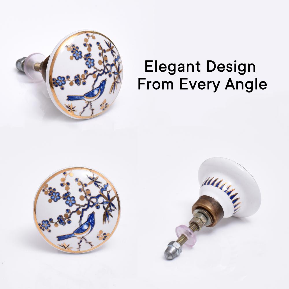 The Blue Bird Golden Berry Ceramic Floral Drawer Knob is not just a functional piece, but a work of art. The charming blue bird design and golden accents are complemented by the intricate floral patterns, making these knobs a perfect choice for a variety of decor styles, from rustic farmhouse to modern eclectic.