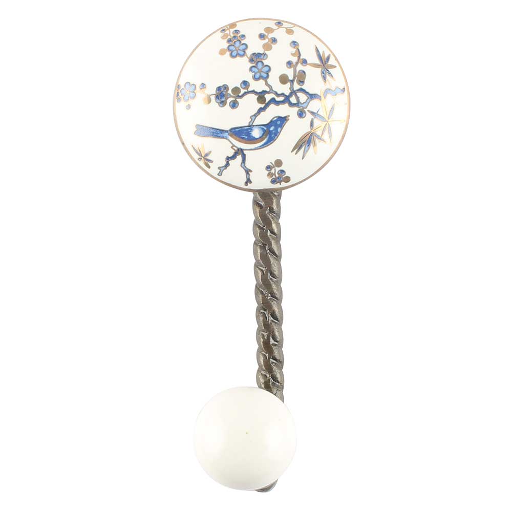 Blue Bird Golden Berry Ceramic Hook in Antique Fitting. A Perfect Complement to the Soft Tone of the Wood are these White Traditional Hat and Coat Hook Made of Genuine Porcelain. It can be use to Hang Jewellery, Leashes, Towels, Scarves, Light Weight Sweaters, Caps etc.
