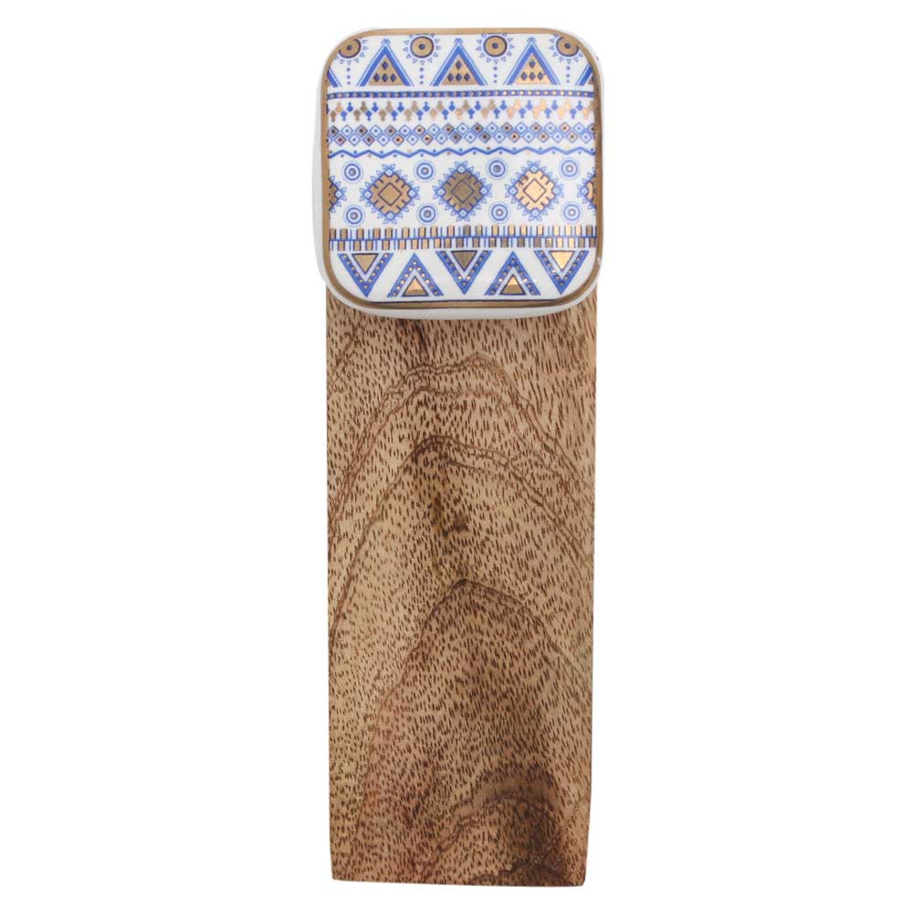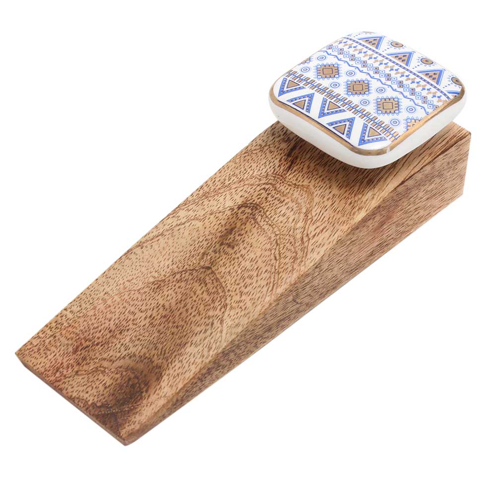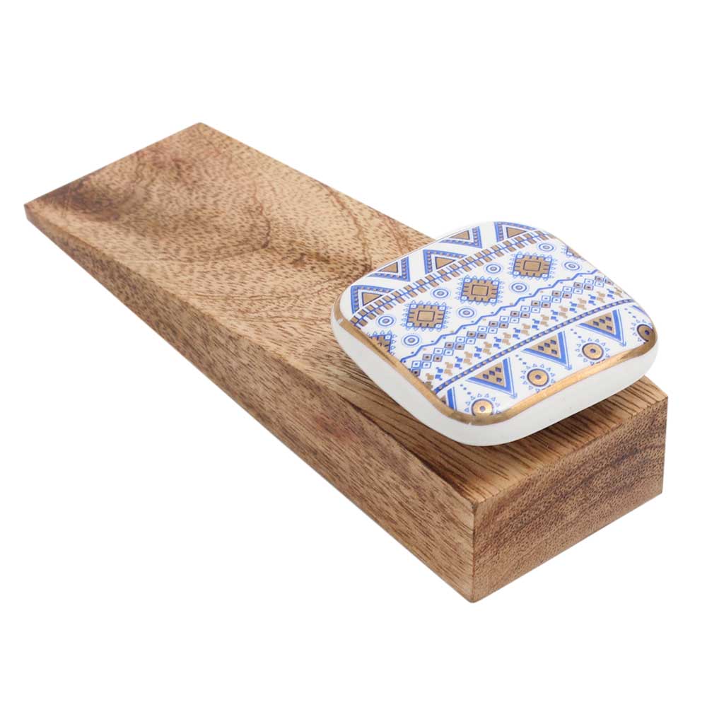 Handmade Ceramic Wooden Door Stopper.Wooden Door Stopper with a Ceramic Knob to Carry it Easily. This Wooden Door Stopper has Glue Dots under it to Ensure that it does not Slip. It is Handmade by the Craftsmen of India and this Innovative Door Stopper won't Disappoint You.