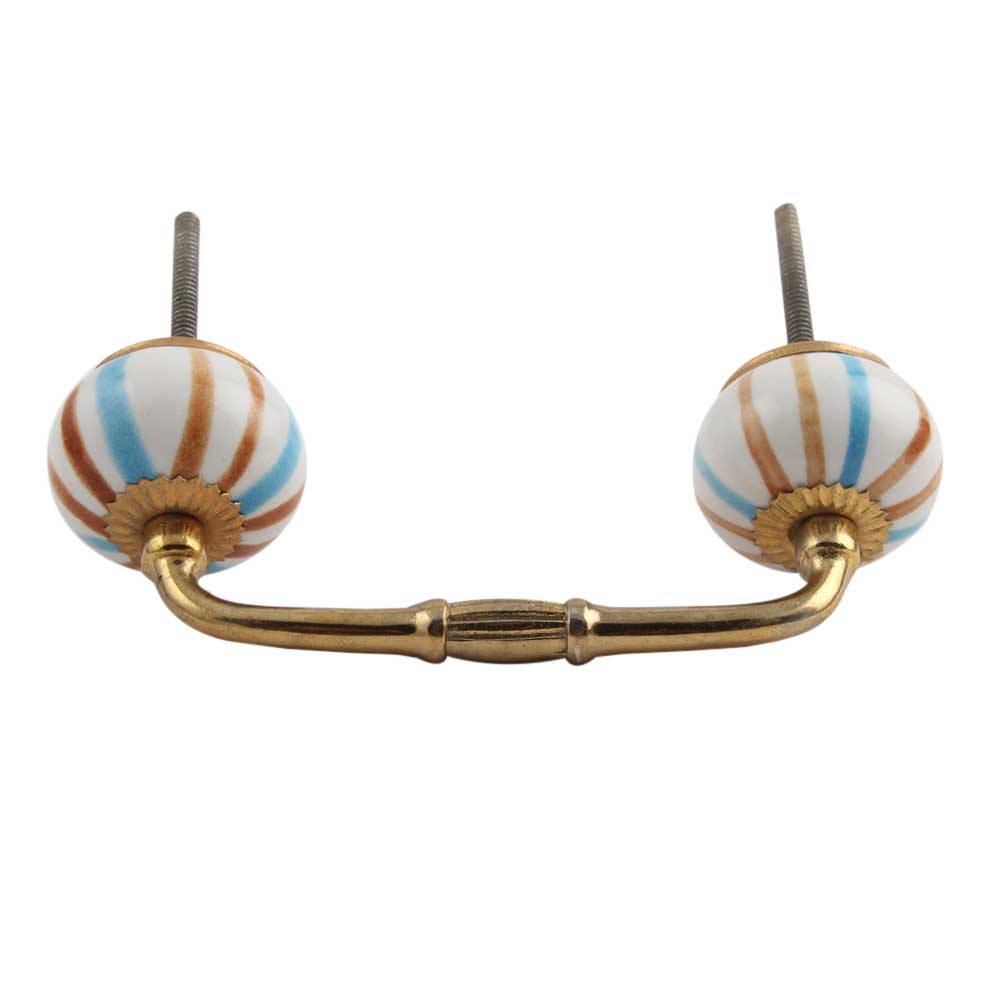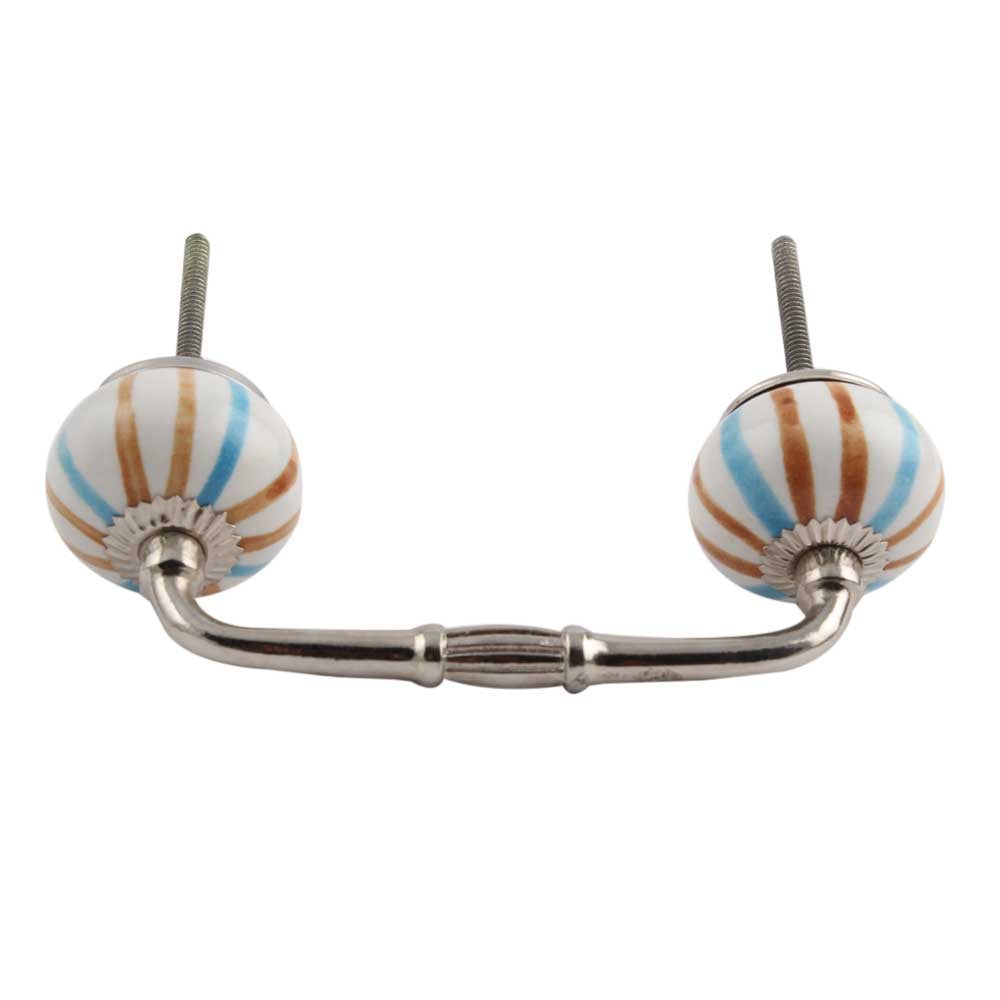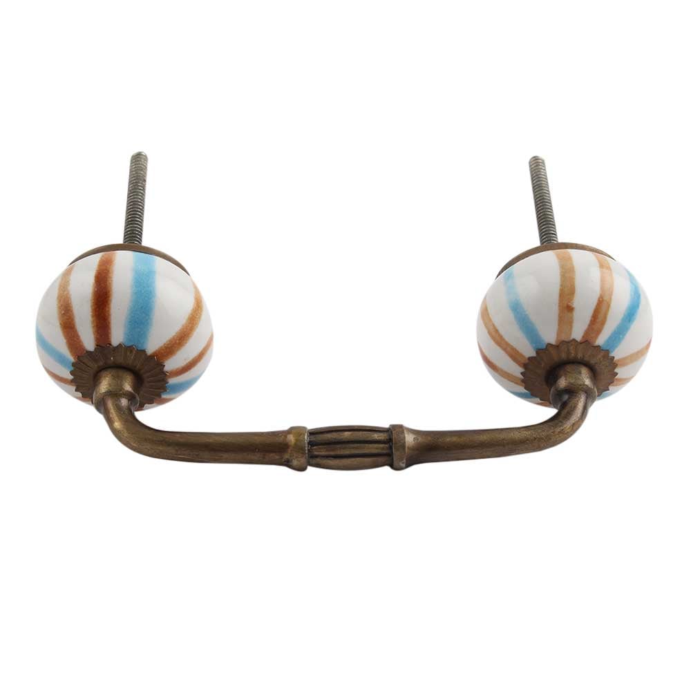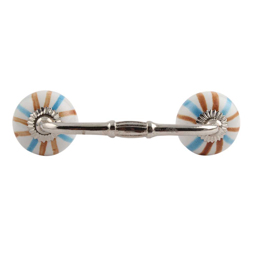 Blue Brown Rays Ceramic Bridge Handle. Ideal for Drawer, Dresser, Cabinet, Wardrobe, Cupboard and Almirah.