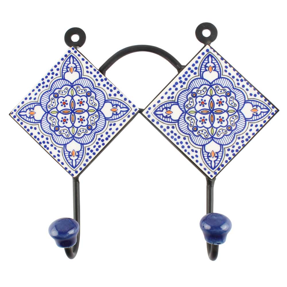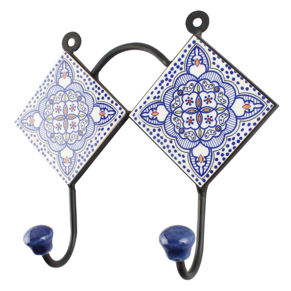 Blue Ceramic Floral Tile Hook