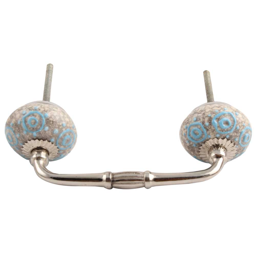 Blue Circles Crackle Ceramic Bridge Handle. Ideal for Drawer, Dresser, Cabinet, Wardrobe, Cupboard and Almirah etc.