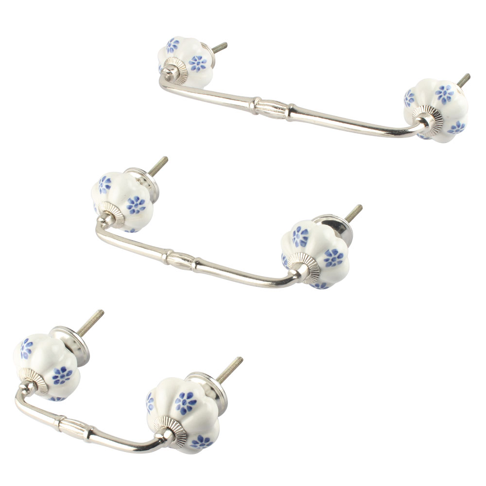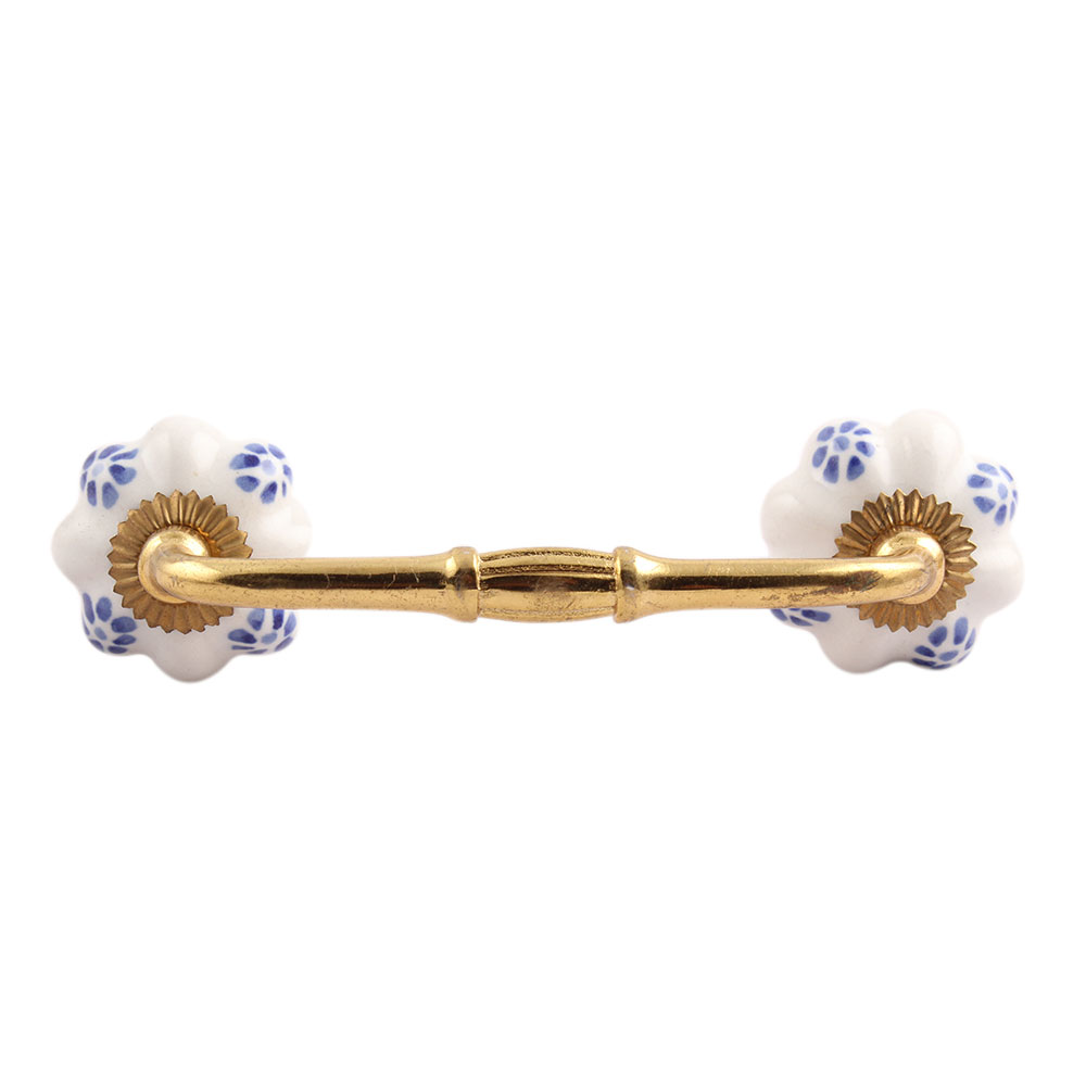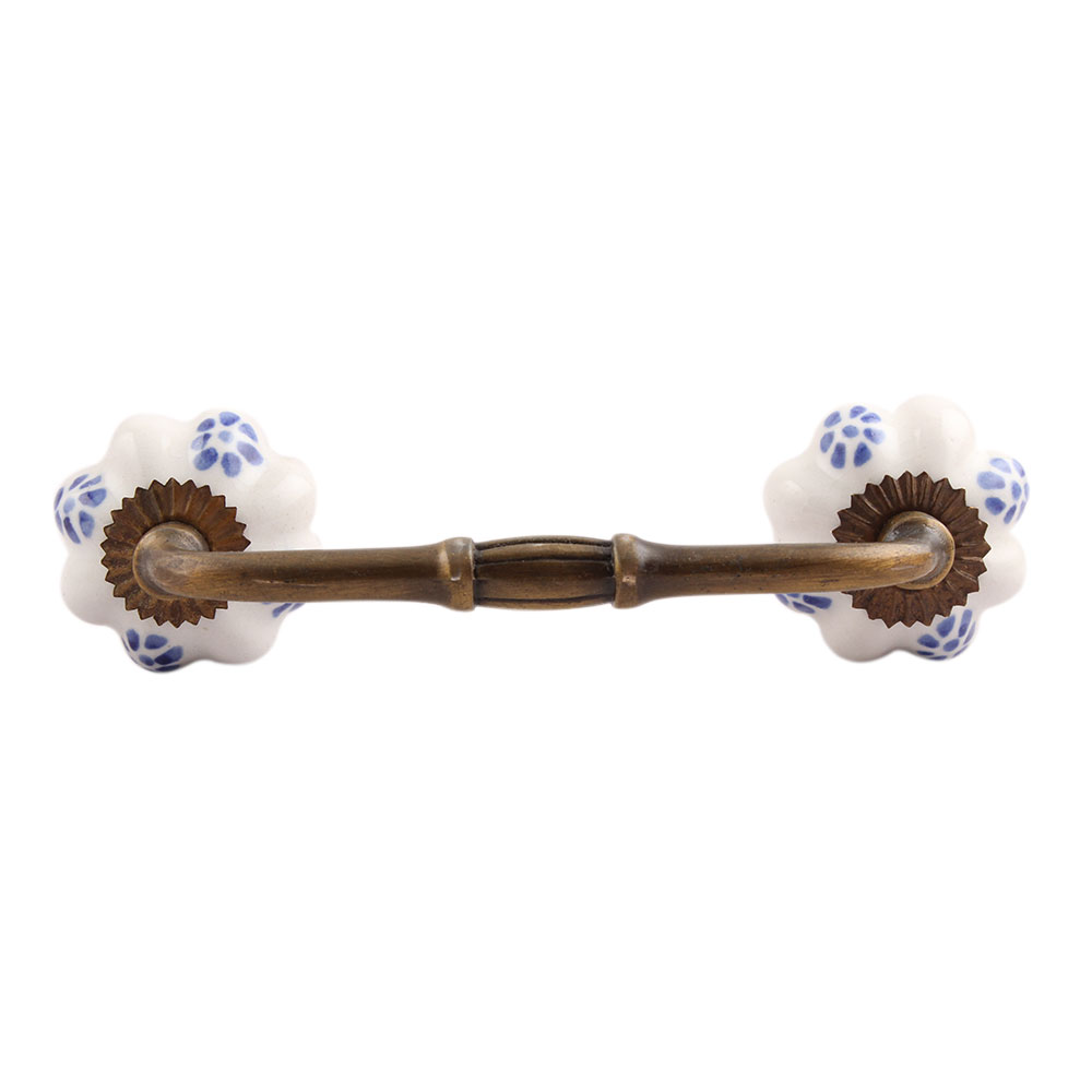 Blue Dahalia Medium Ceramic Bridge Handle. Ideal for Drawer, Dresser, Cabinet, Wardrobe, Cupboard and Almirah.