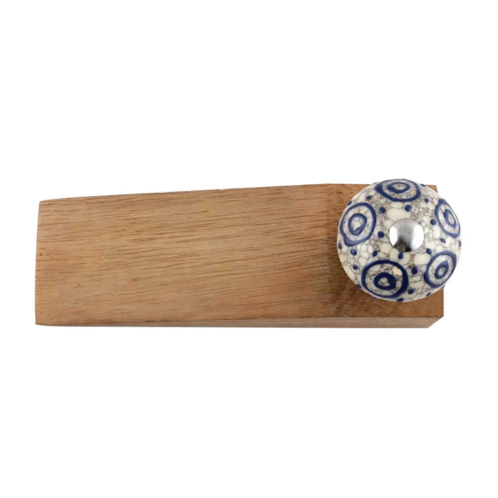 Handmade Ceramic and Wooden Door Stopper.Wooden Door Stopper with a Ceramic Knob to Carry it Easily. This Wooden Door Stopper has Glue Dots under it to Ensure that it does not Slip. It is Handmade by the Craftsmen of India and this Innovative Door Stopper won't Disappoint You.