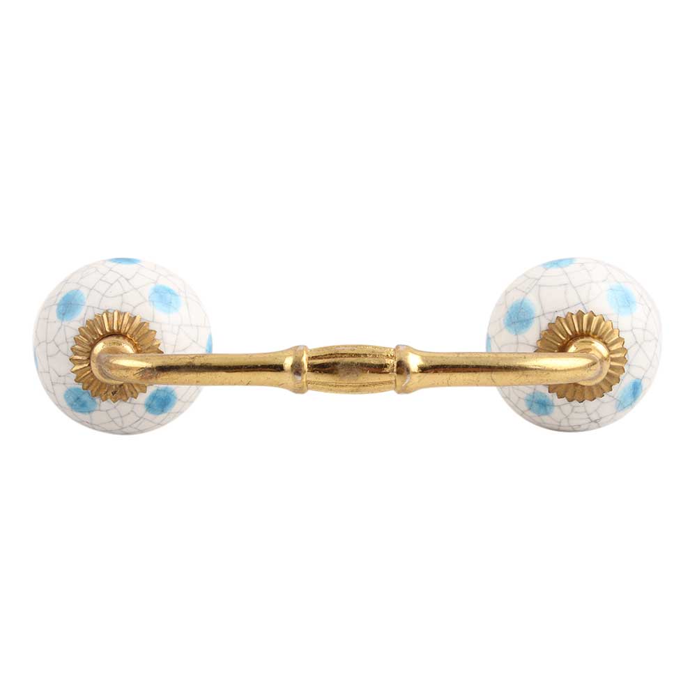 Blue Dotted Cackle Ceramic Bridge Handle. Ideal for Drawer, Dresser, Cabinet, Wardrobe, Cupboard and Almirah.