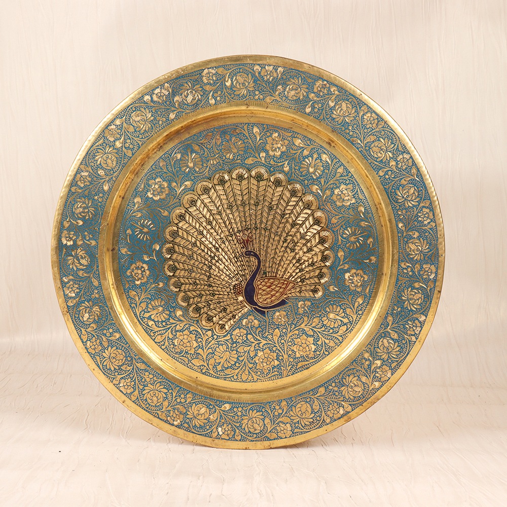 Elevate your space with the captivating Vintage Brass Round Hanging Plate. This exquisite piece is a true work of art, blending timeless elegance with stunning craftsmanship. Prepare to be mesmerized by the Vintage Brass Round Hanging Plate. The intricate peacock design, meticulously etched into the gleaming brass surface, is a true feast for the eyes. The rich blue enamel accents add depth and dimension, creating a stunning contrast that will elevate any room's decor. This exquisite plate is more than just a decorative item - it's a conversation piece that will captivate your guests and leave a lasting impression. Hang it in your living room, dining area, or entryway to instantly transform the space and infuse it with timeless elegance. Whether you're a collector of vintage home goods or simply seeking to add a touch of sophistication to your abode, the Vintage Brass Round Hanging Plate is an absolute must-have. Elevate your style and create a sense of refined ambiance in your home with this truly remarkable piece.