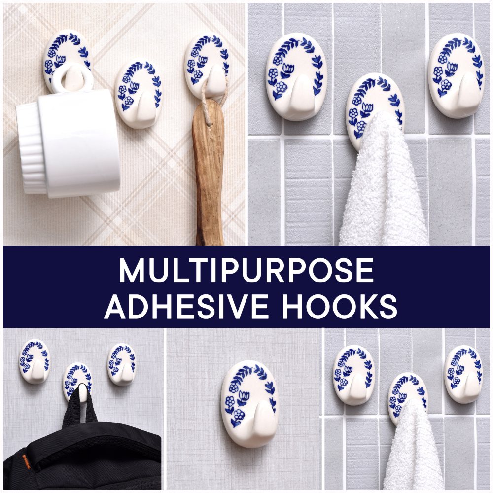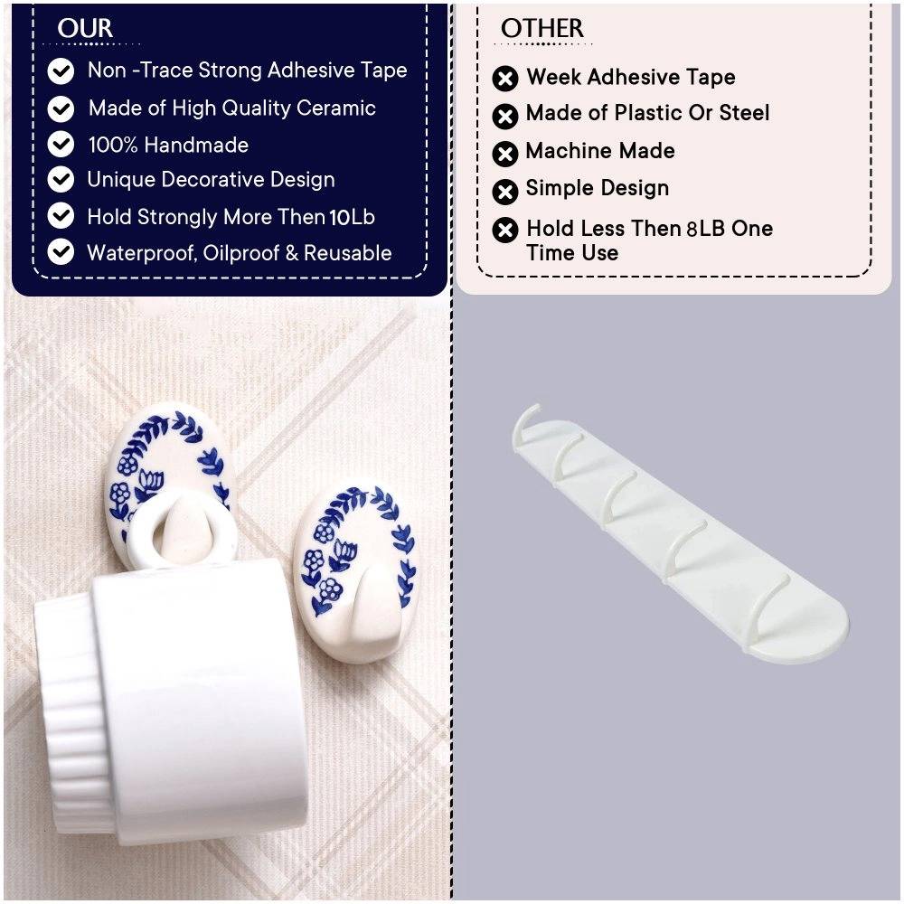 Indianshelf.com for bulk/wholesale orders.Indianshelf.us for personal purchases.The Blue Floral Ceramic No Drill Adhesive Wall Hook combines elegant design and practicality in one. This charming hook features a beautiful blue floral ceramic design, perfect for enhancing the décor in any room while providing a convenient place to hang your items. With its no-drill adhesive installation, this hook is an easy, damage-free solution for keeping your space organized and tidy.