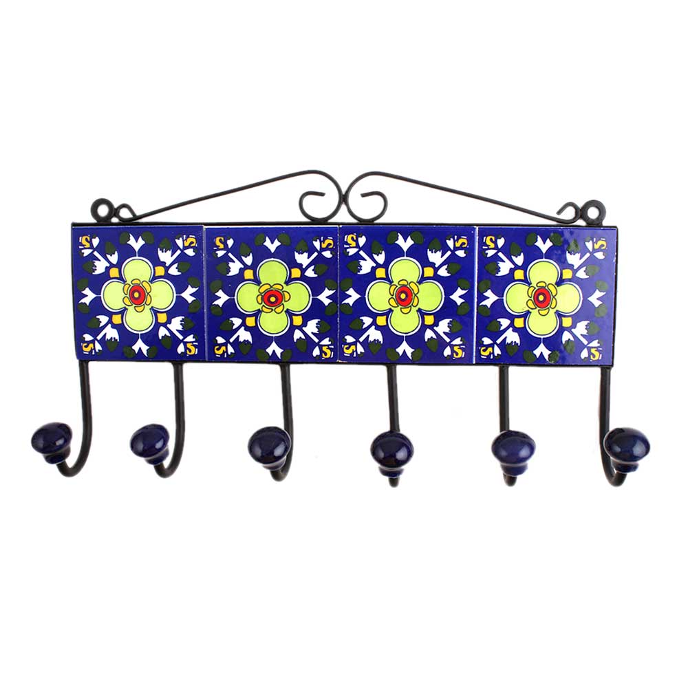 Blue Floral Ceramic Tiles Hooks-456