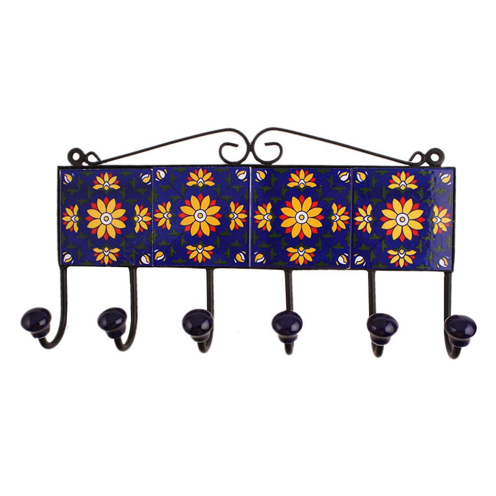 Blue Floral Ceramic Tiles Hooks-457
