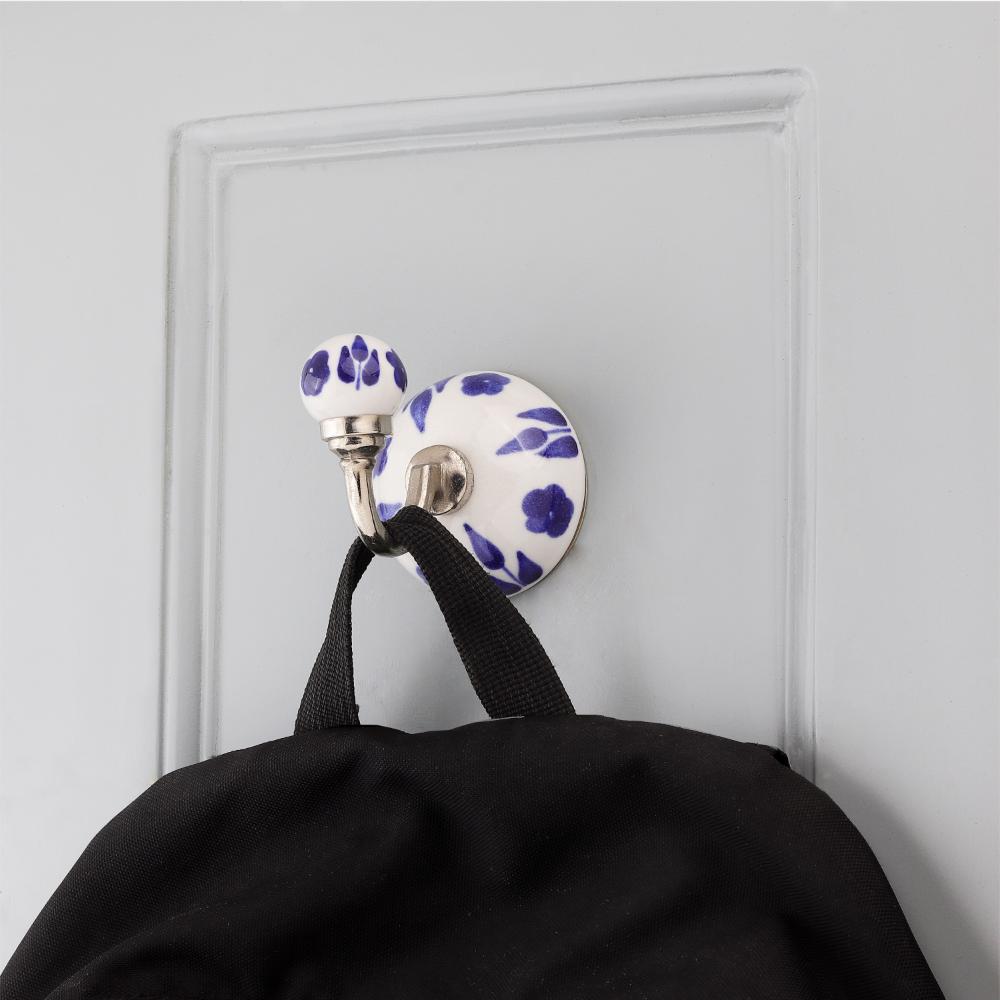 Blue Floral Hooks . When Put on Wall or Cabinet It is An Art in Itself. This Hook is Strong Enough to Hold Your Cloths, Keys, Tea Cups, Coffee Mugs, Hand Towels Etc.