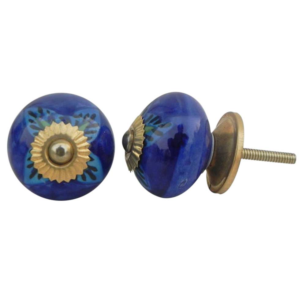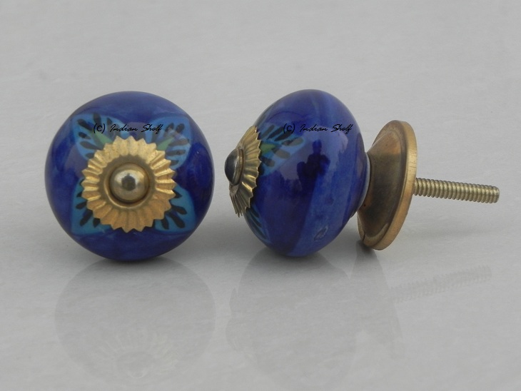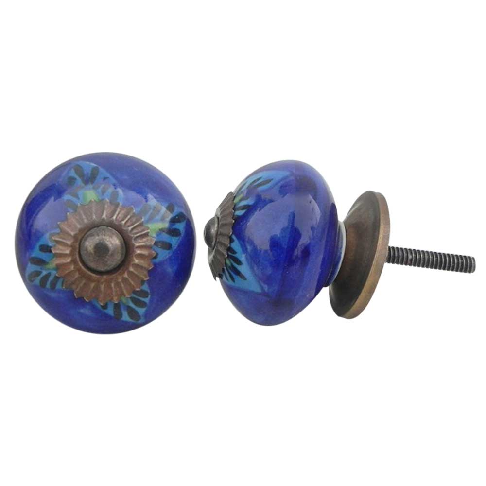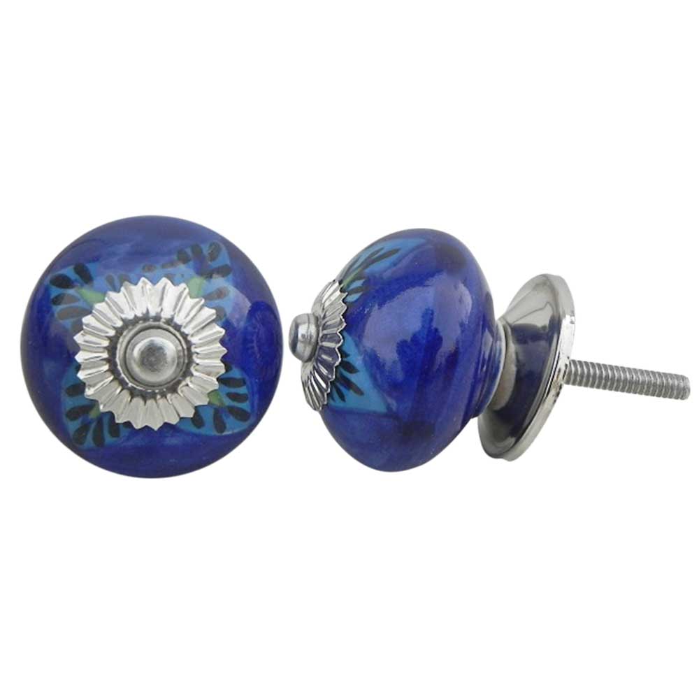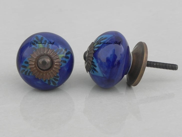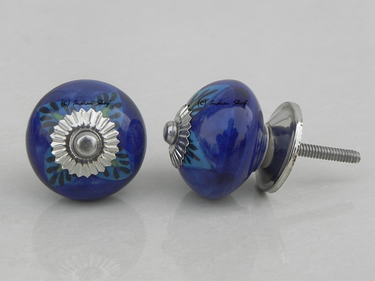 Blue Floral Leaf ceramic knob. Ideal for kitchen cabinets, kitchen drawers, dining room, bed room, chest drawers, dressing tables, almirah